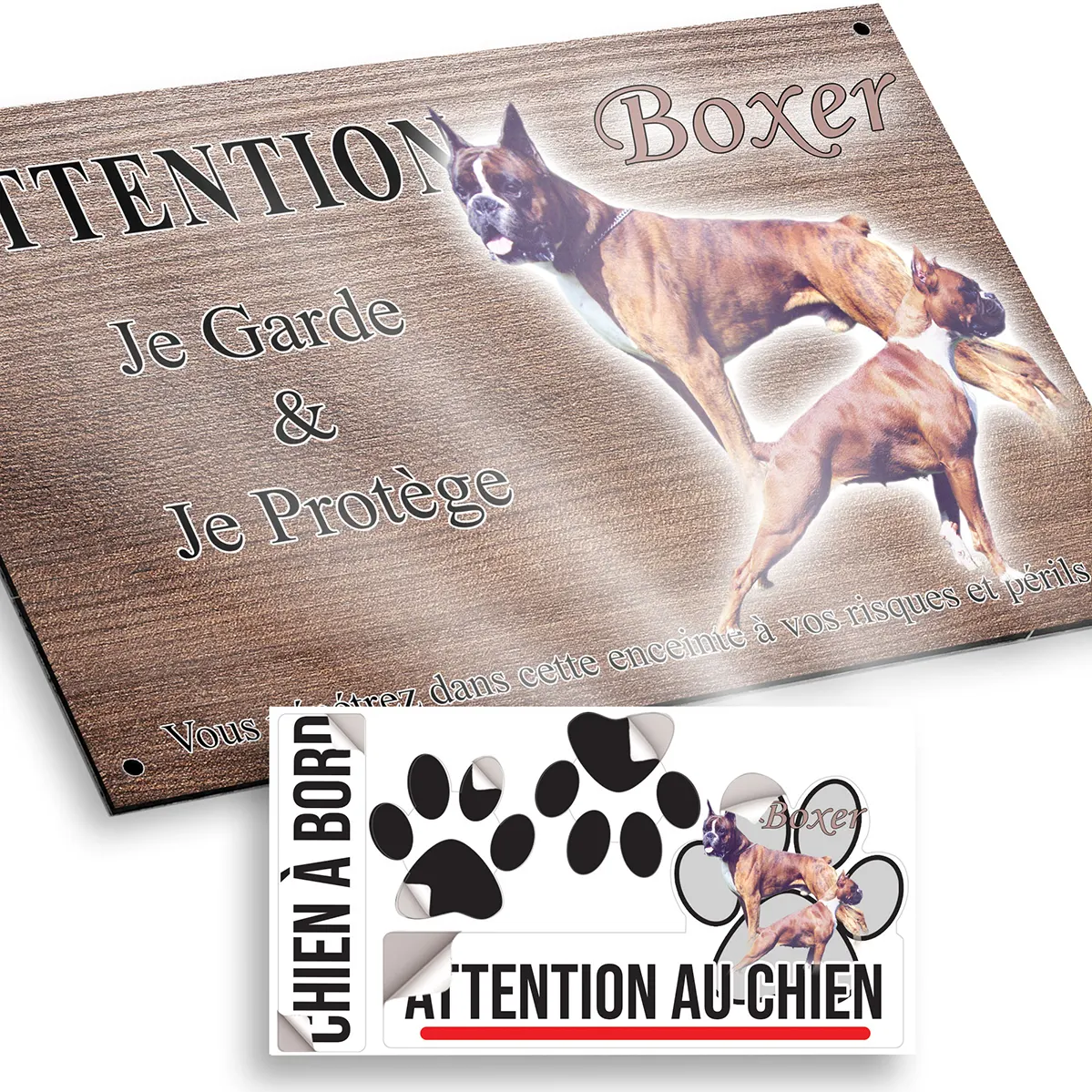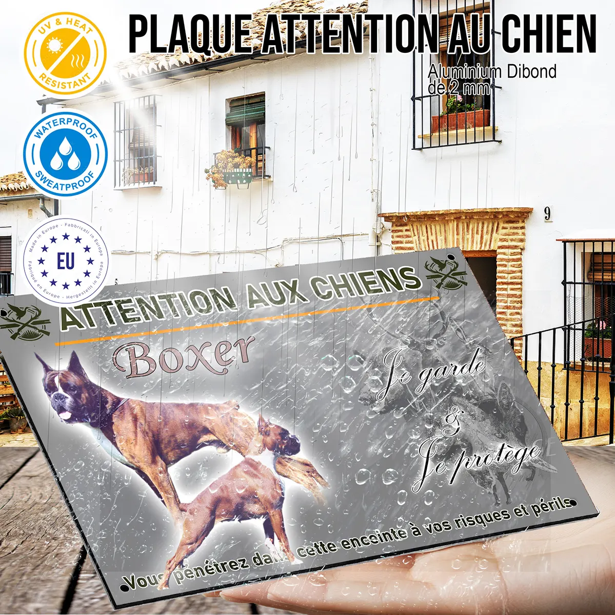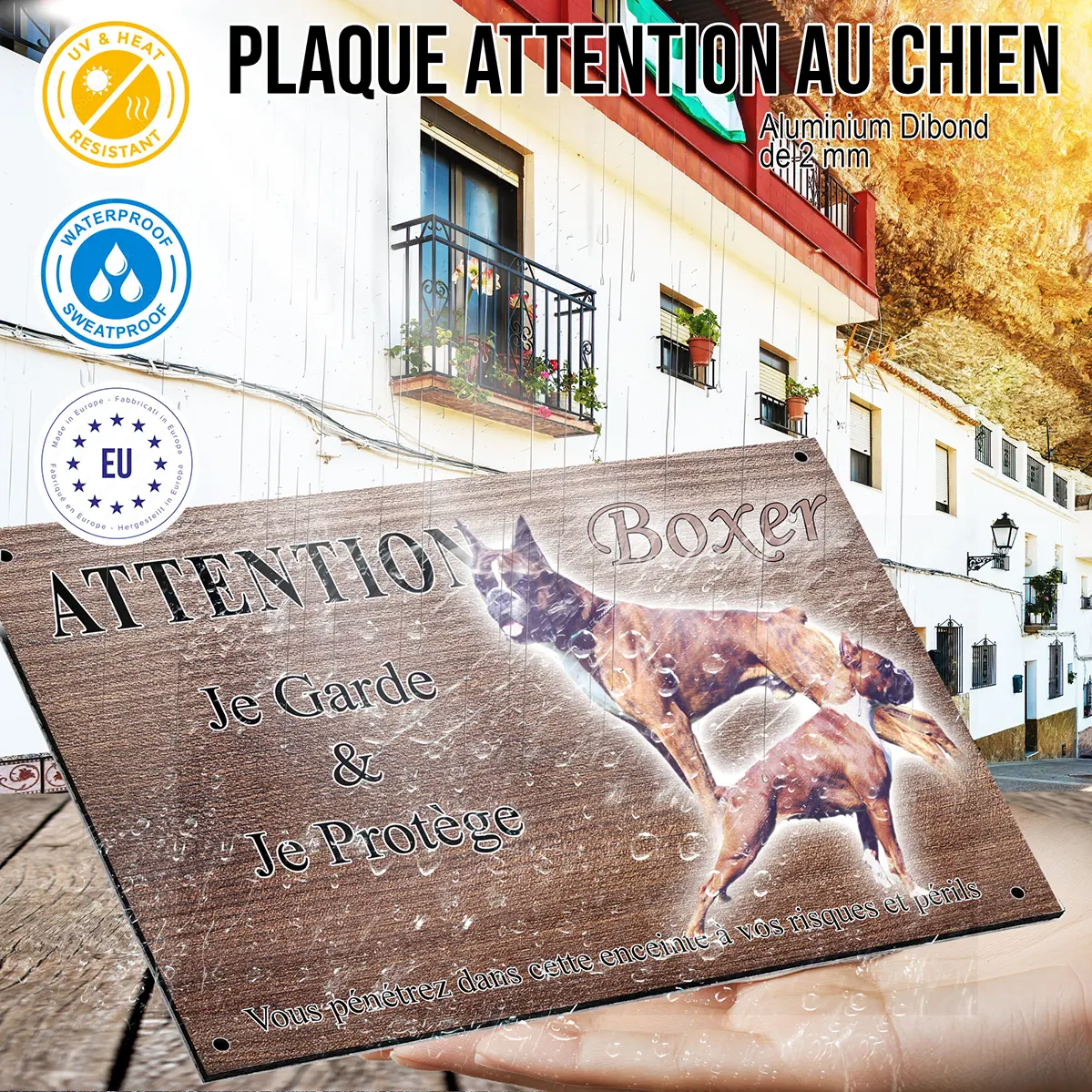 - Plaque Attention au chien chien boxer : signalétique claire et dissuasive