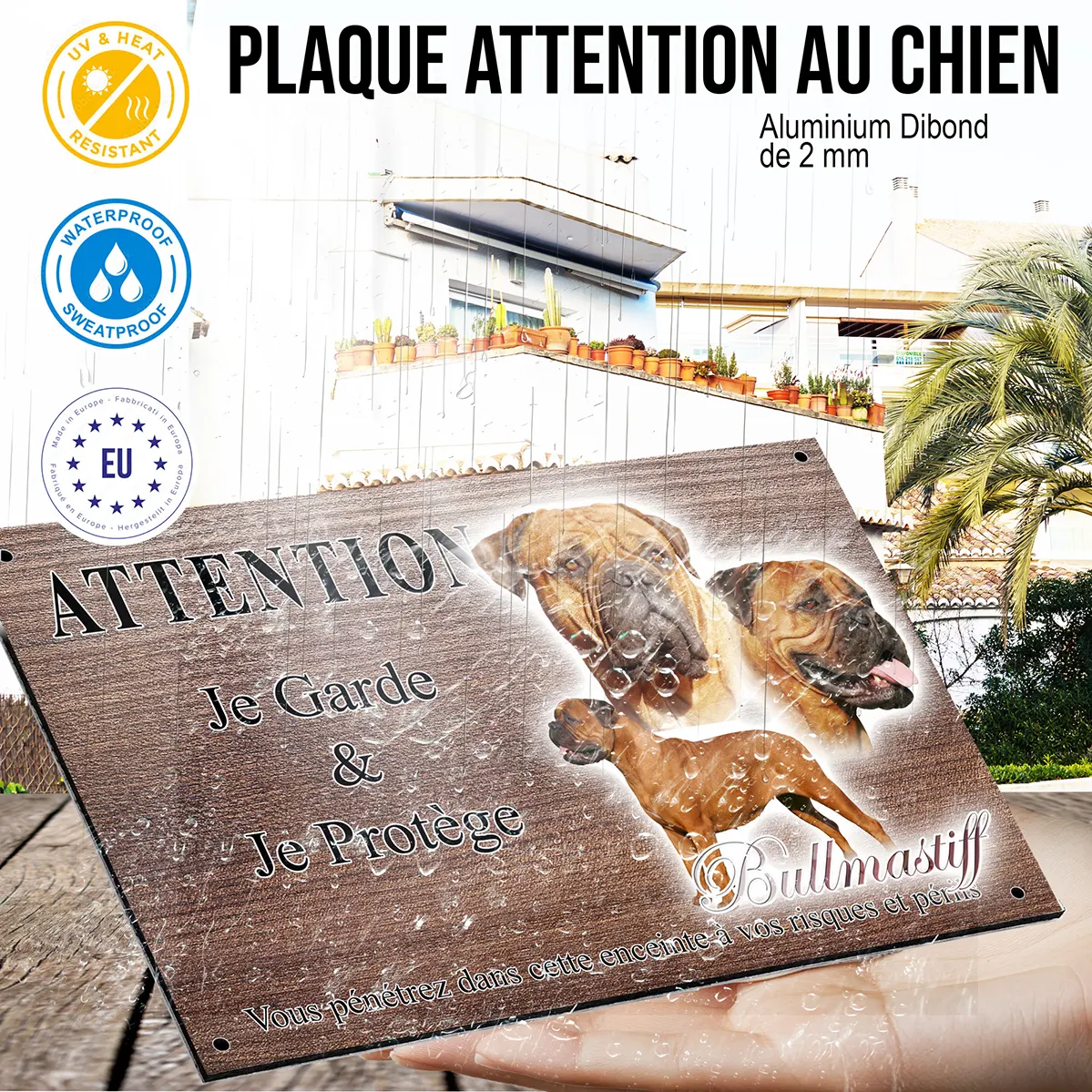 - Plaque Attention au chien chien bullmastiff : signalétique claire et dissuasive