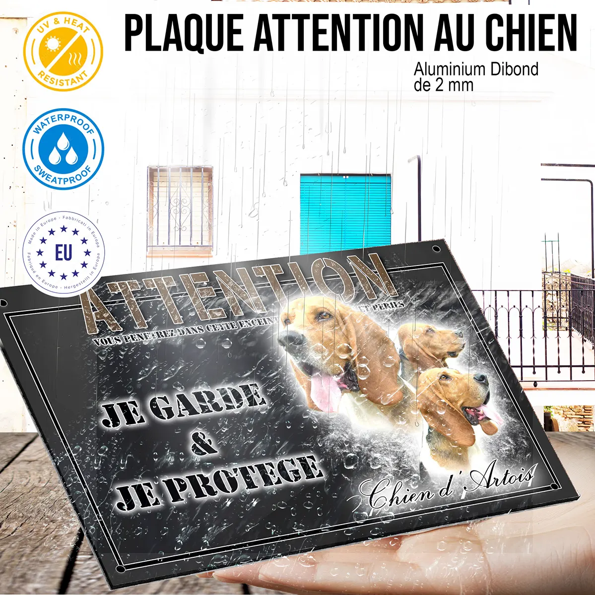 - Plaque Attention au chien chien d’artois : signalétique claire et dissuasive