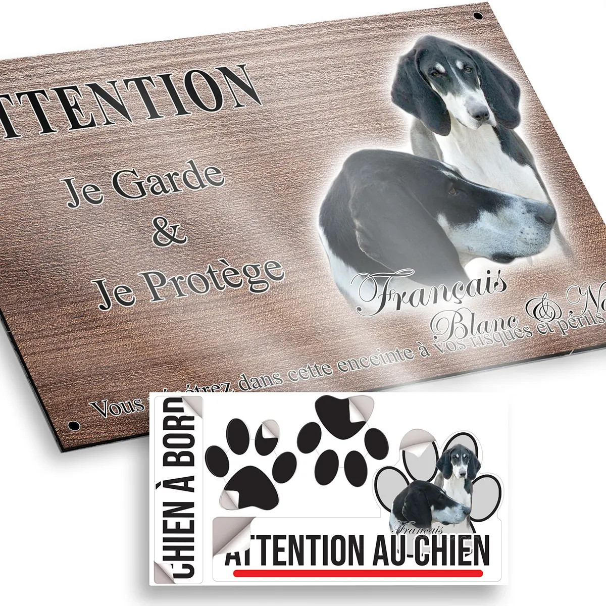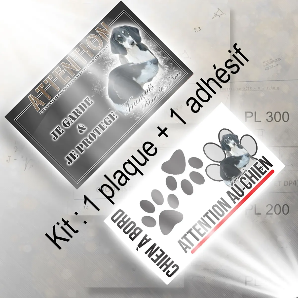 Pour en savoir plus sur notre gamme de plaque attention au chien chien français noir et blanc