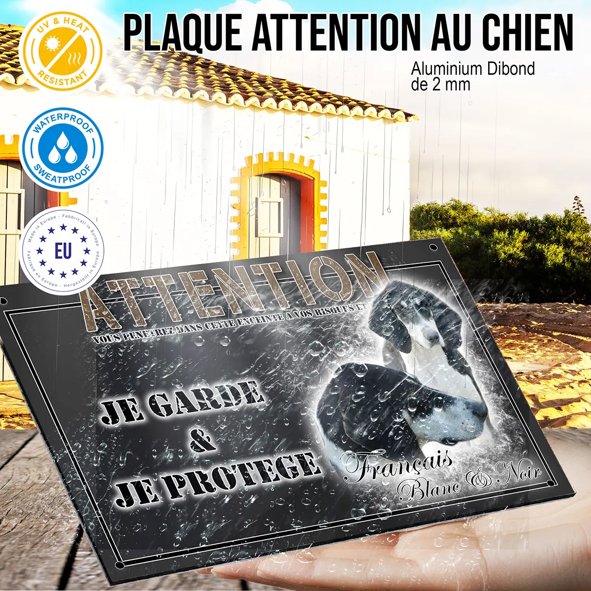 Au-delà de sa fonction de signalétique, cette plaque se distingue par son aspect décoratif raffiné. Résistante et facile à installer, elle s’intègre harmonieusement à tous les types d’extérieurs : portail, clôture ou porte d’entrée. Faites le choix d’une plaque Attention au chien aussi esthétique qu’efficace, et affichez fièrement le caractère unique de votre chien français noir et blanc !