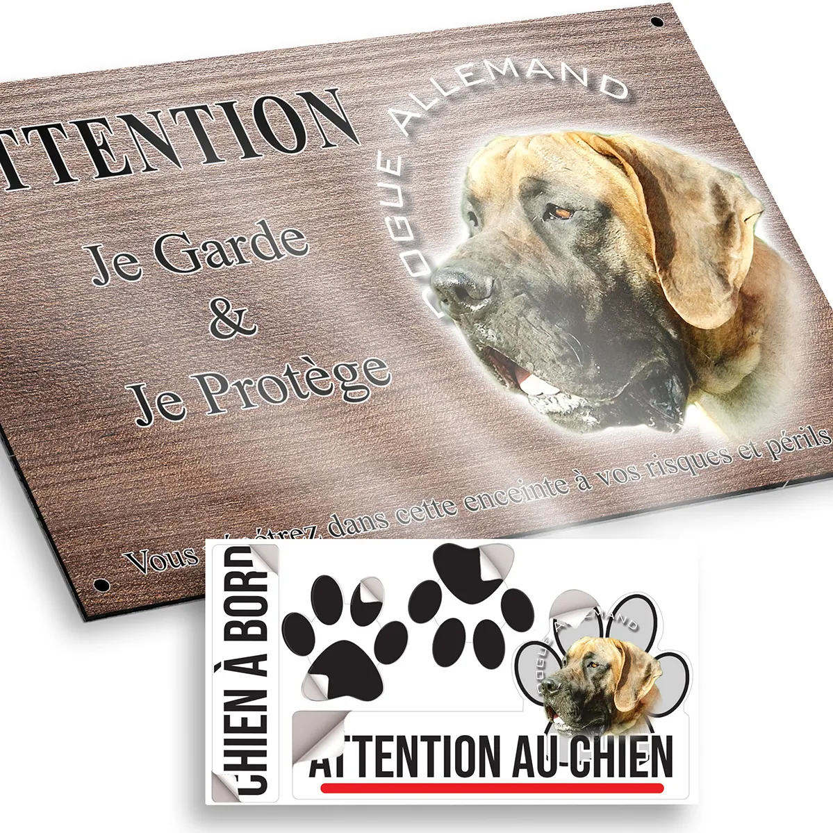 - Plaque Attention au chien chien grand danois : signalétique claire et dissuasive