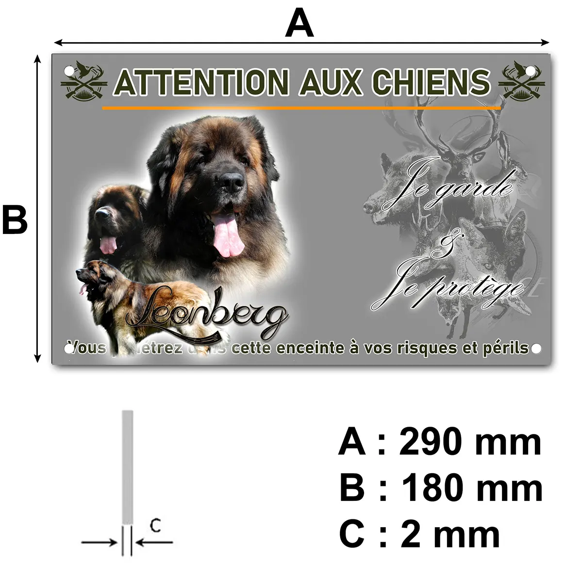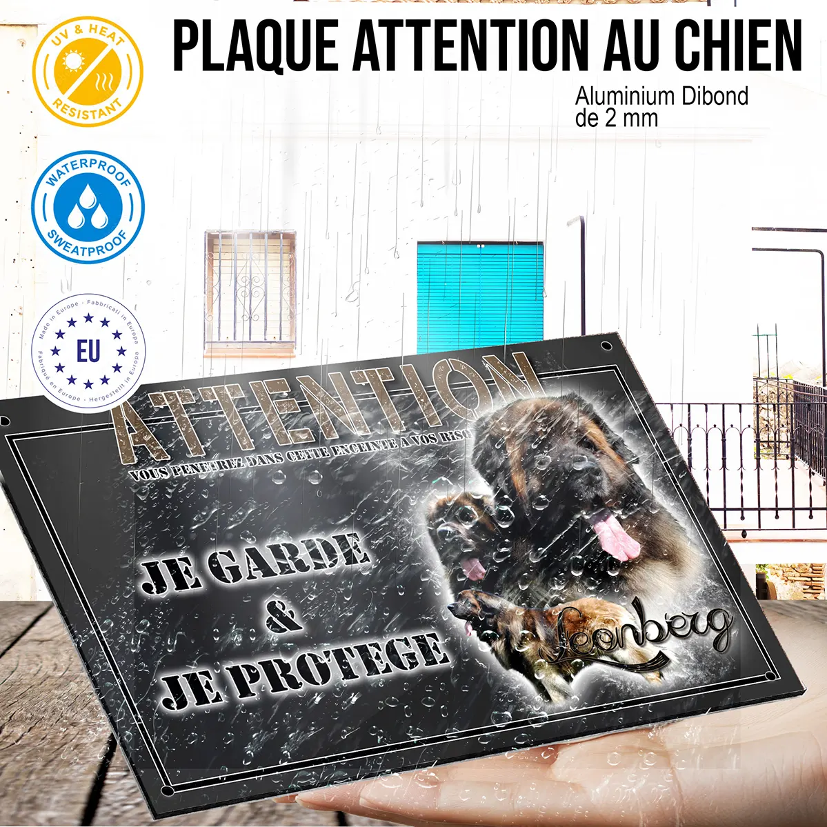 - Plaque Attention au chien chien leonberg : signalétique claire et dissuasive