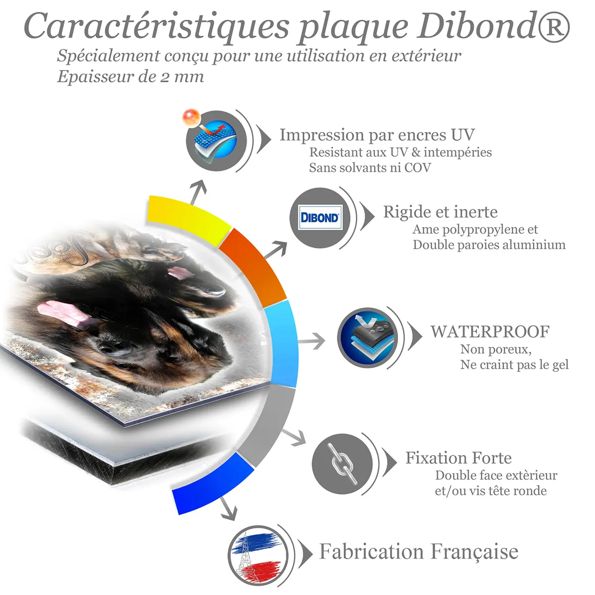Oui, la plaque est fabriquée en aluminium Dibond de 2 mm et imprimée en UV. Elle ne craint ni la pluie, ni le soleil, ni le gel. Elle peut rester fixée dehors toute l’année sans perdre ses couleurs.