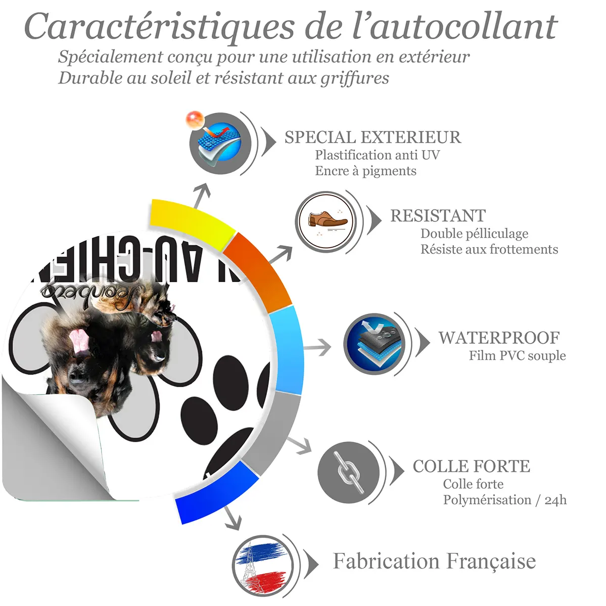 Opter pour une plaque Attention au chien chien leonberg permet d’informer clairement visiteurs et livreurs de la présence de ce gardien à quatre pattes. Ces chiens, réputés pour leur force tranquille et leur attitude imposante, sont de véritables dissuasions contre les intrusions. La signalétique personnalisée à l’image du Léonberg met en avant son rôle de protecteur, tout en rassurant sur son caractère sociable et équilibré. La dissuasion offerte par cette plaque participe à la sécurité de votre propriété, tout en valorisant cette race exceptionnelle auprès de vos visiteurs.