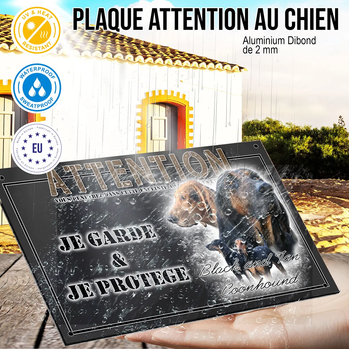 Au-delà de son rôle en signalétique et dissuasion, cette plaque séduit par la qualité de son illustration. Véritable hommage au Black and Tan Coonhound, elle habille élégamment votre portail ou clôture. Offrez-vous un produit solide, durable, et esthétiquement soigné, qui participe à la sécurité de votre domicile tout en reflétant votre passion pour cette race unique.