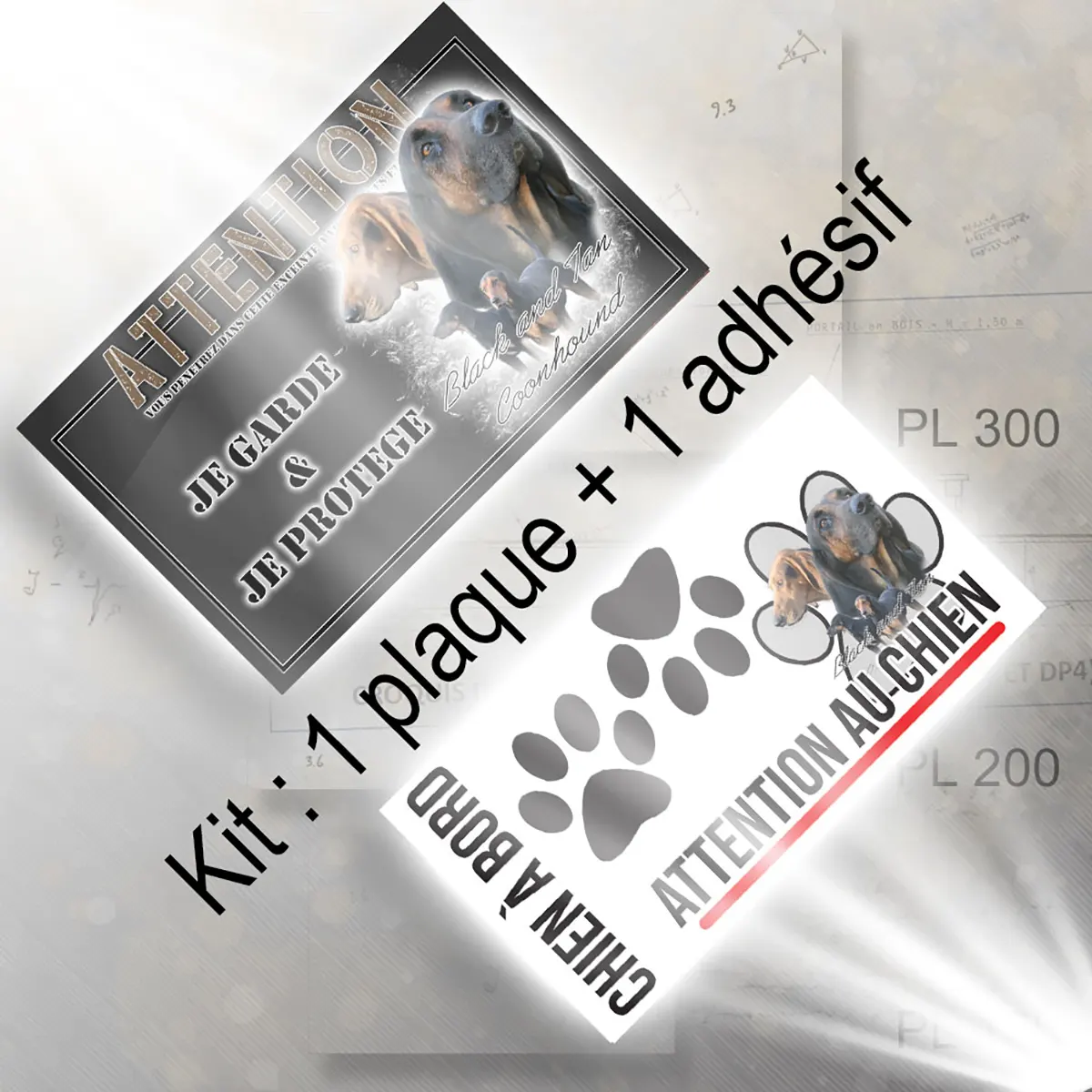 Plaque Attention au chien Chien noir et feu pour la chasse