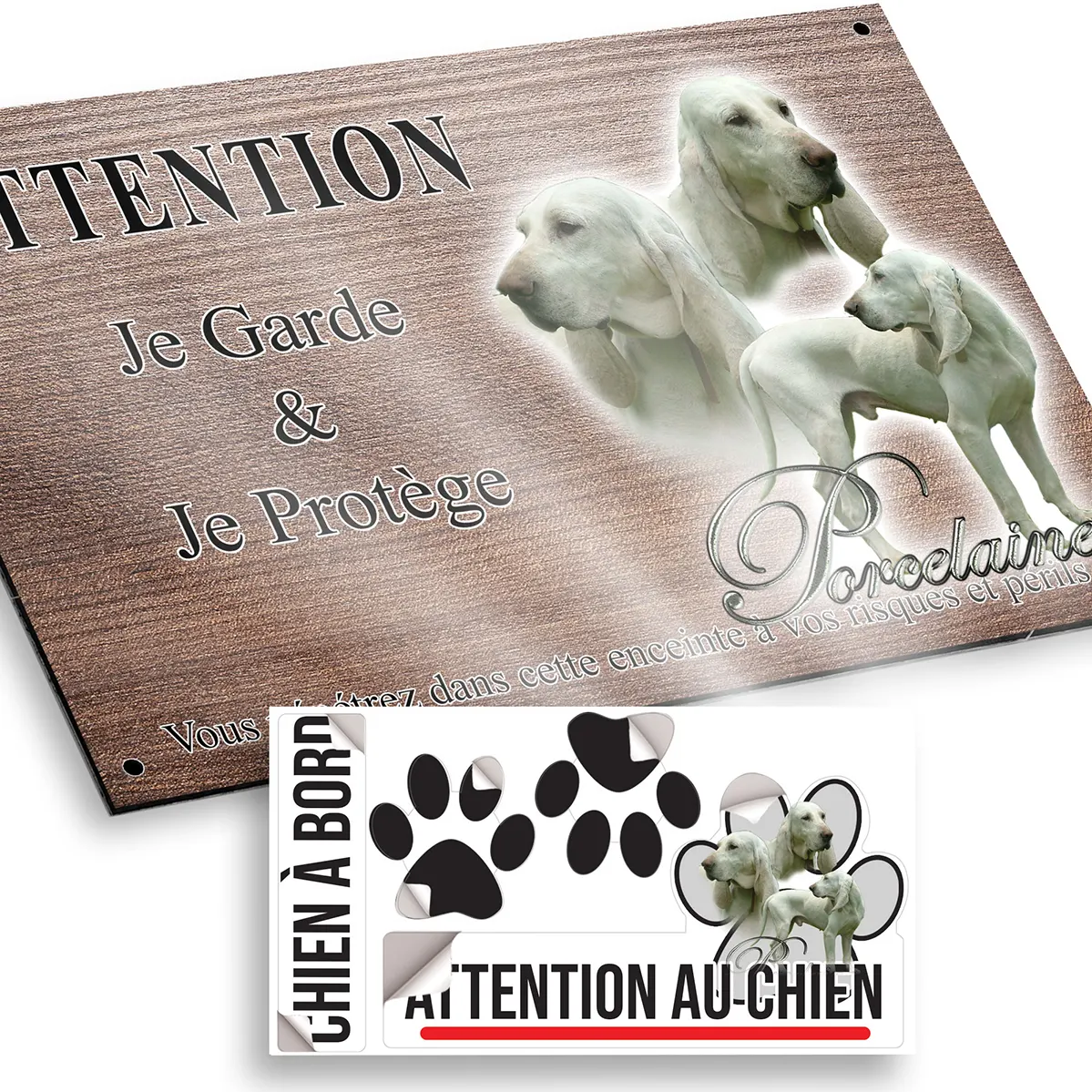 La plaque Attention au chien chien porcelaine combine esthétique et utilité : imprimée en haute qualité, résistante aux intempéries, elle s’intègre parfaitement à tout portail ou mur extérieur. Elle reflète la noblesse du Porcelaine et sublime votre environnement par une touche de raffinement, tout en assurant la sécurité de votre domicile.