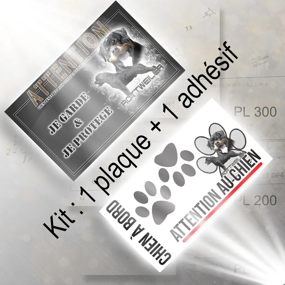 - Plaque Attention au chien chien rottweiler : signalétique claire et dissuasive