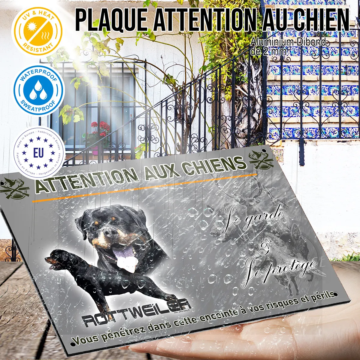 En plus d’être un objet de décoration, cette plaque a un rôle de prévention essentiel. Elle informe les visiteurs et livreurs de la présence de votre fidèle compagnon, évitant ainsi les mauvaises surprises. C’est la solution parfaite pour allier sécurité, élégance et amour de votre race de chien préférée.Commandez dès aujourd’hui votre plaque Attention au chien chien rottweiler et profitez d’une expédition rapide sous 24 heures. Alliez sécurité, élégance et efficacité pour protéger et embellir votre propriété.