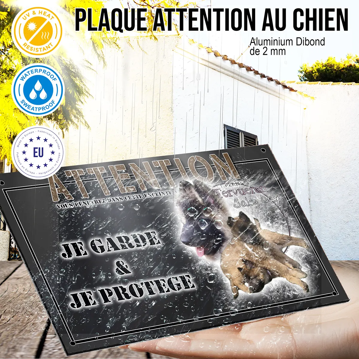 Plaque attention au chien Malinois De Mondioring métal résistant extérieur