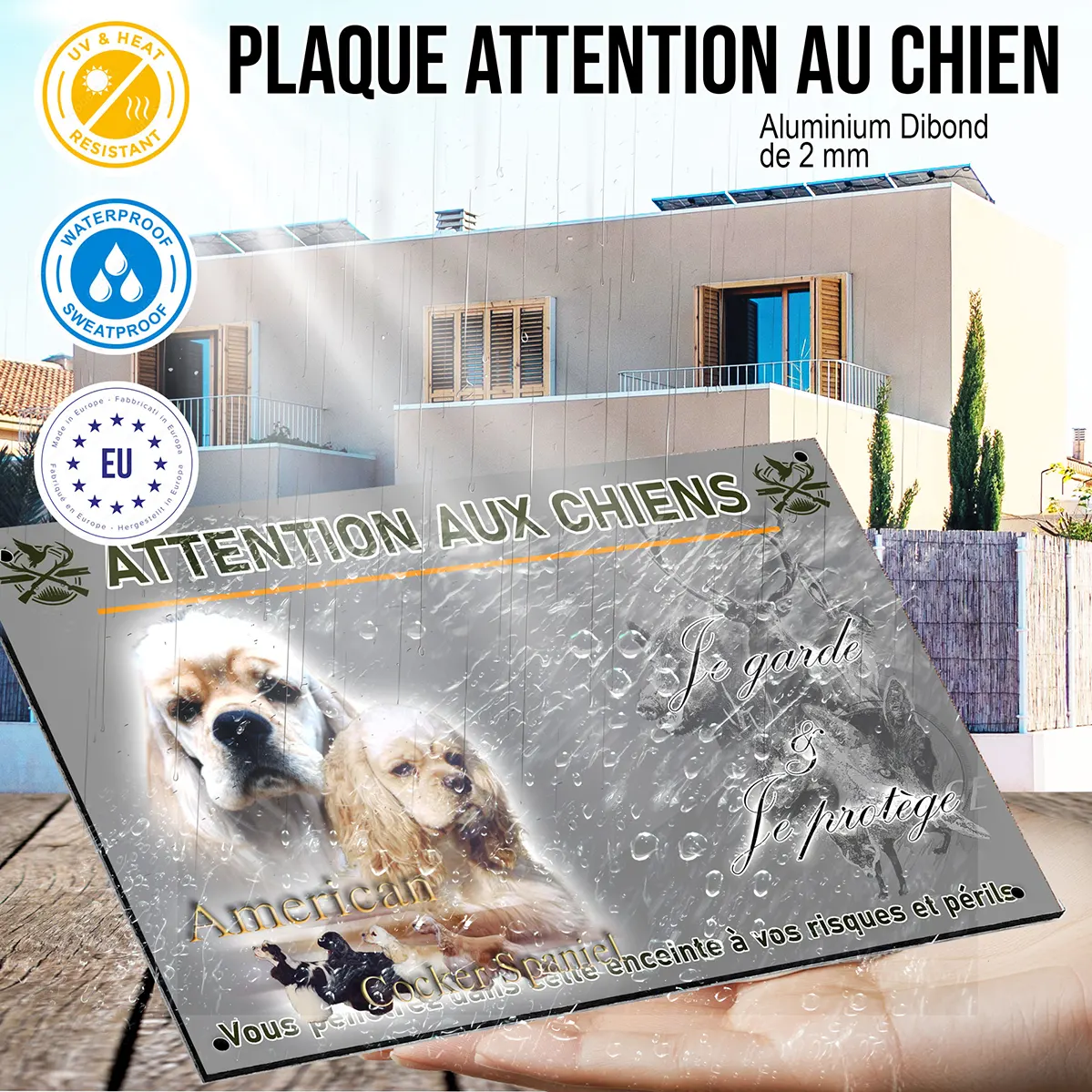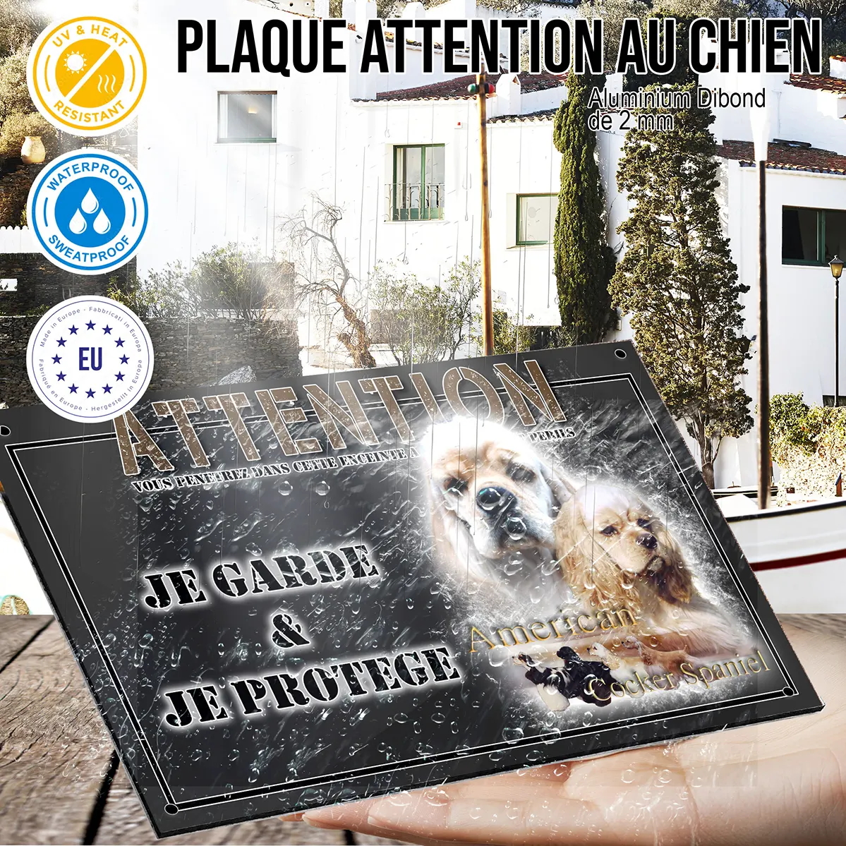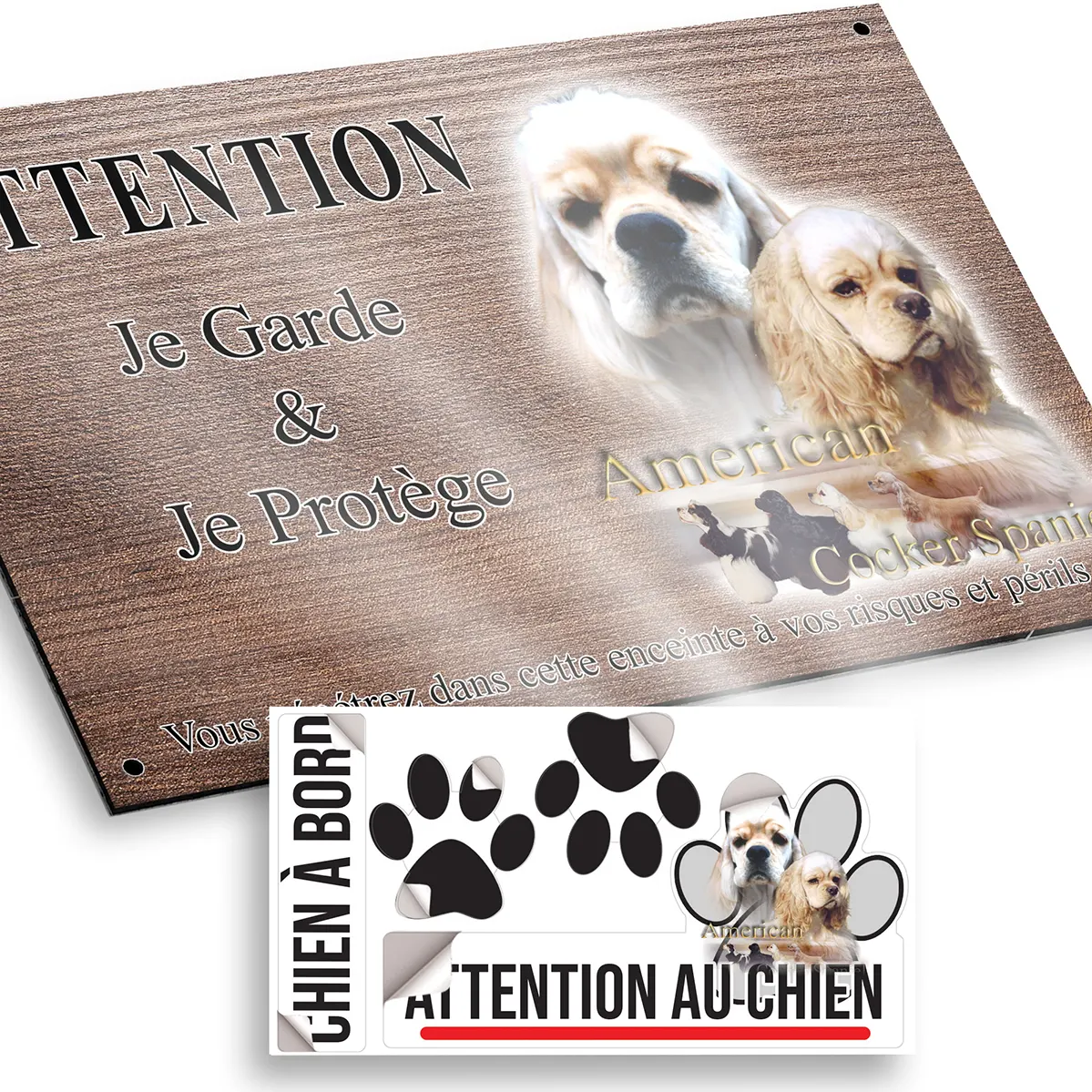 - Plaque Attention au chien cocker americain : signalétique claire et dissuasive