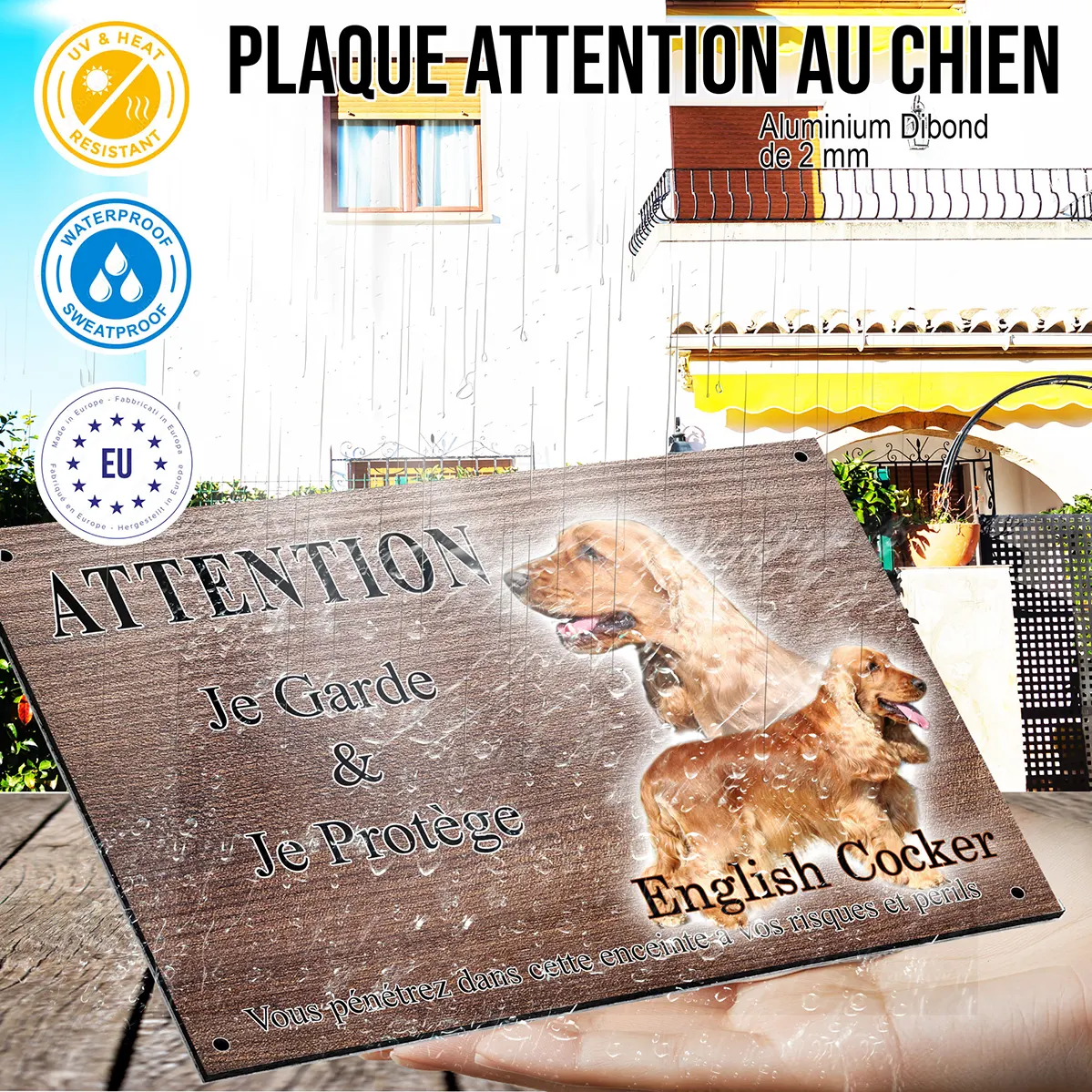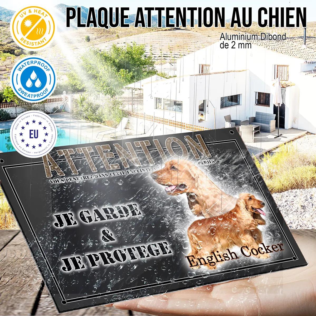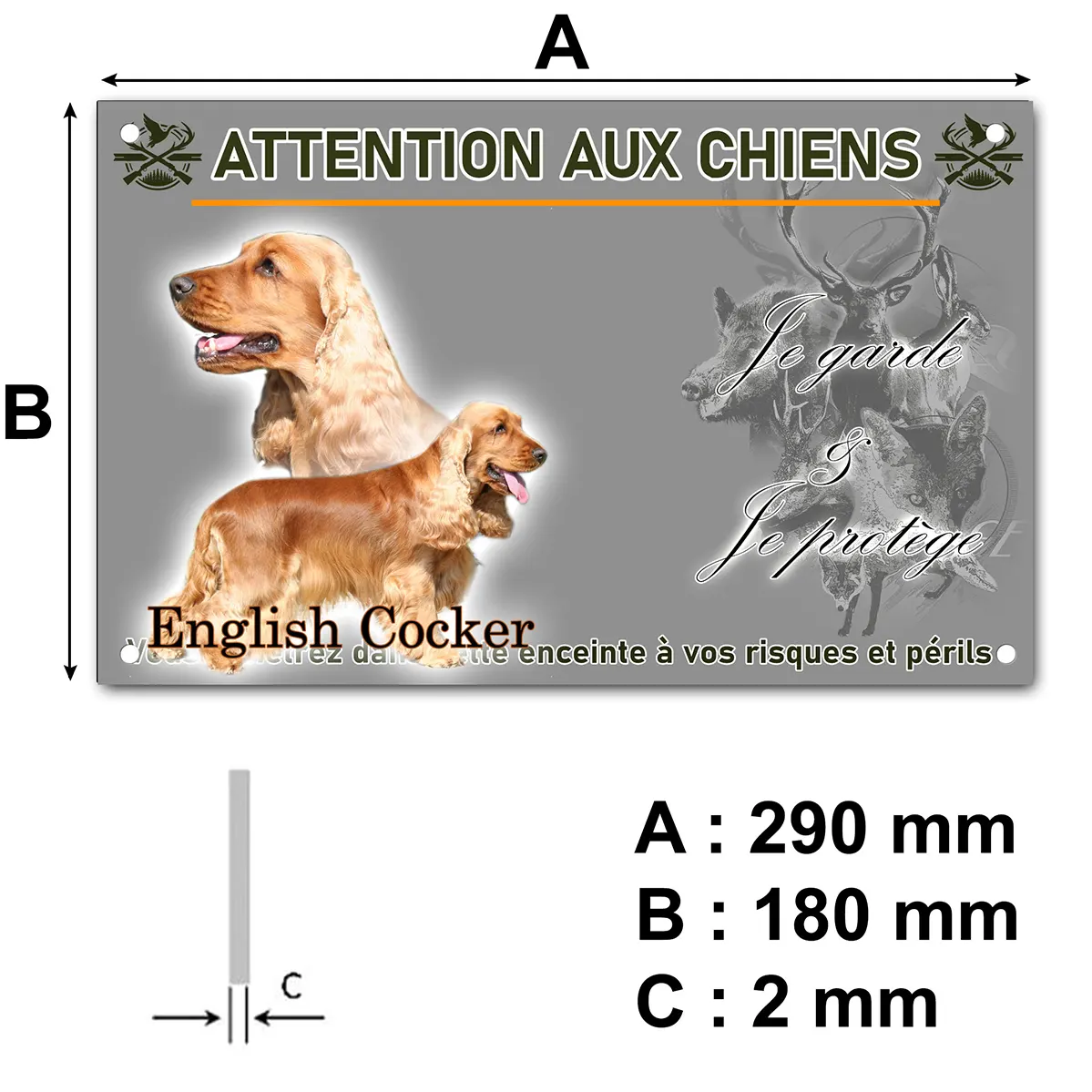 - Plaque Attention au chien cocker anglais fauve : signalétique claire et dissuasive