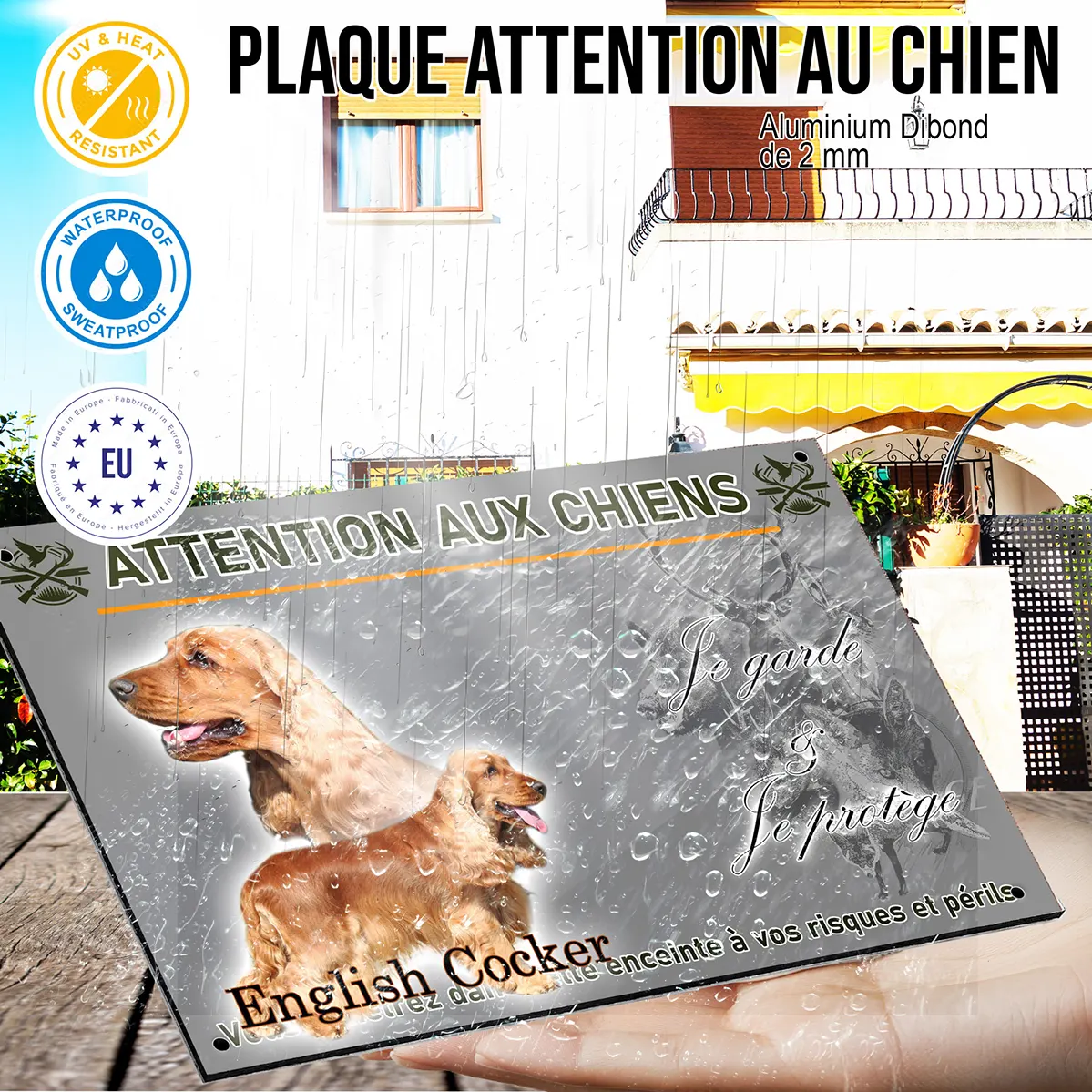 Plus qu’un simple avertissement, cette plaque est un véritable élément de décoration. Elle associe le charme et l’élégance du cocker anglais fauve à une fonction essentielle de protection. Sa finition résistante garantit une longue tenue face aux intempéries. Offrez-vous un objet pratique et esthétique qui met à l’honneur votre compagnon tout en renforçant la sécurité de votre domicile !