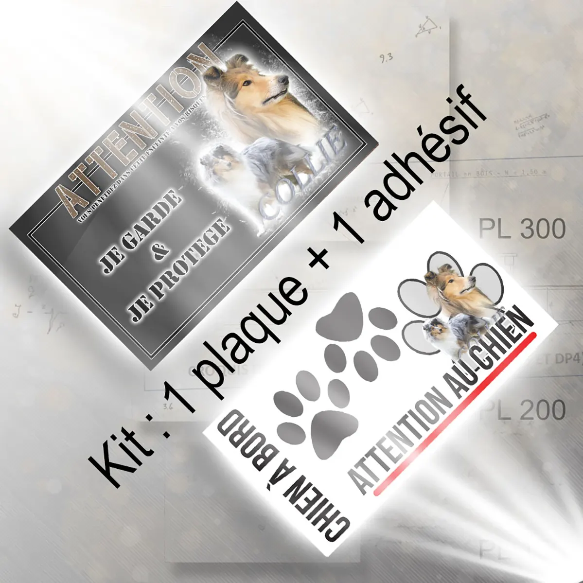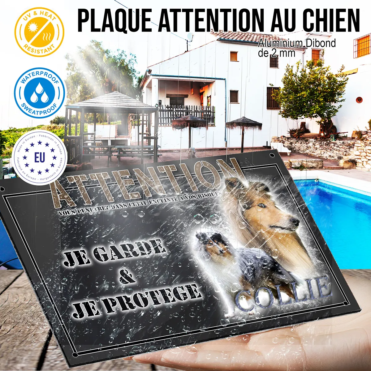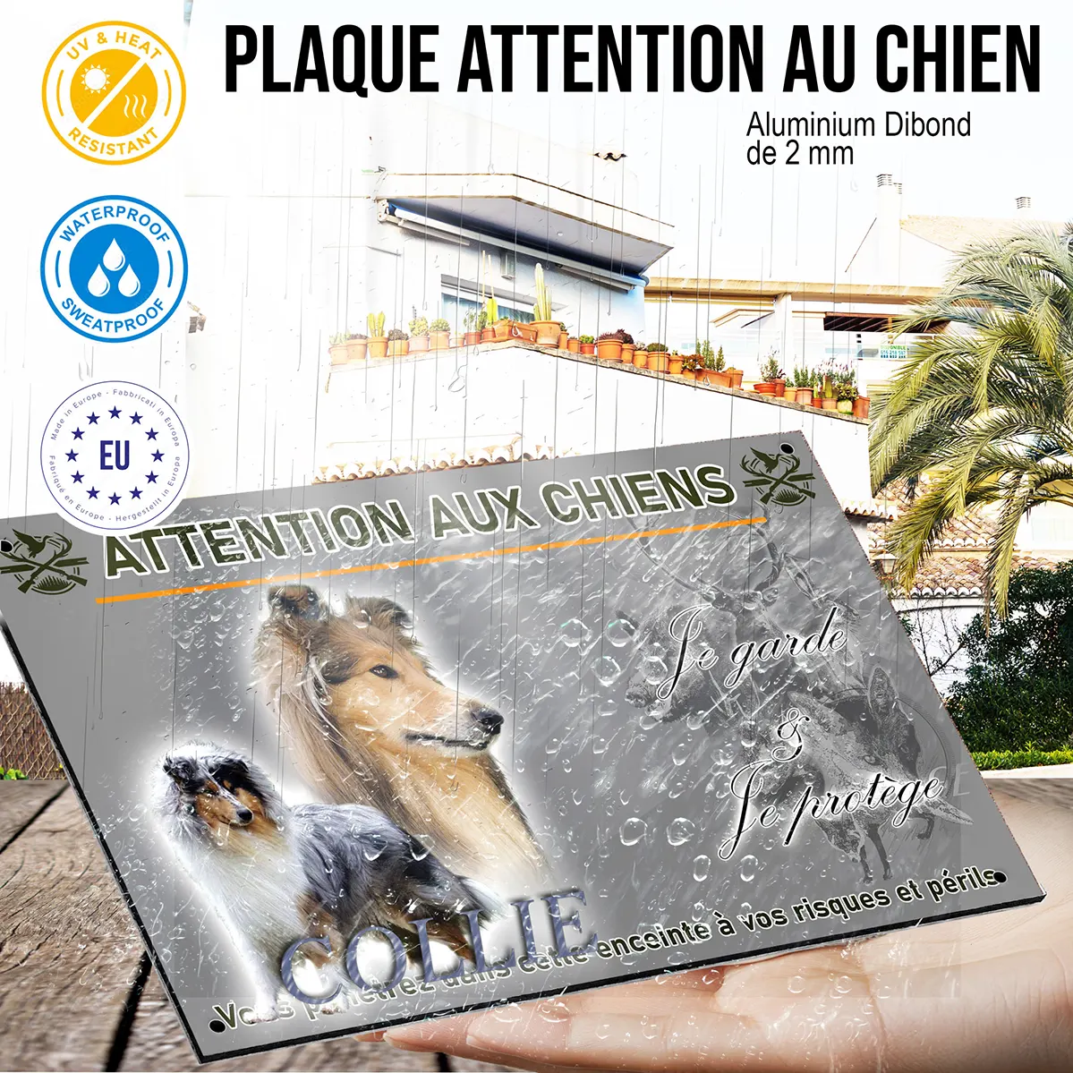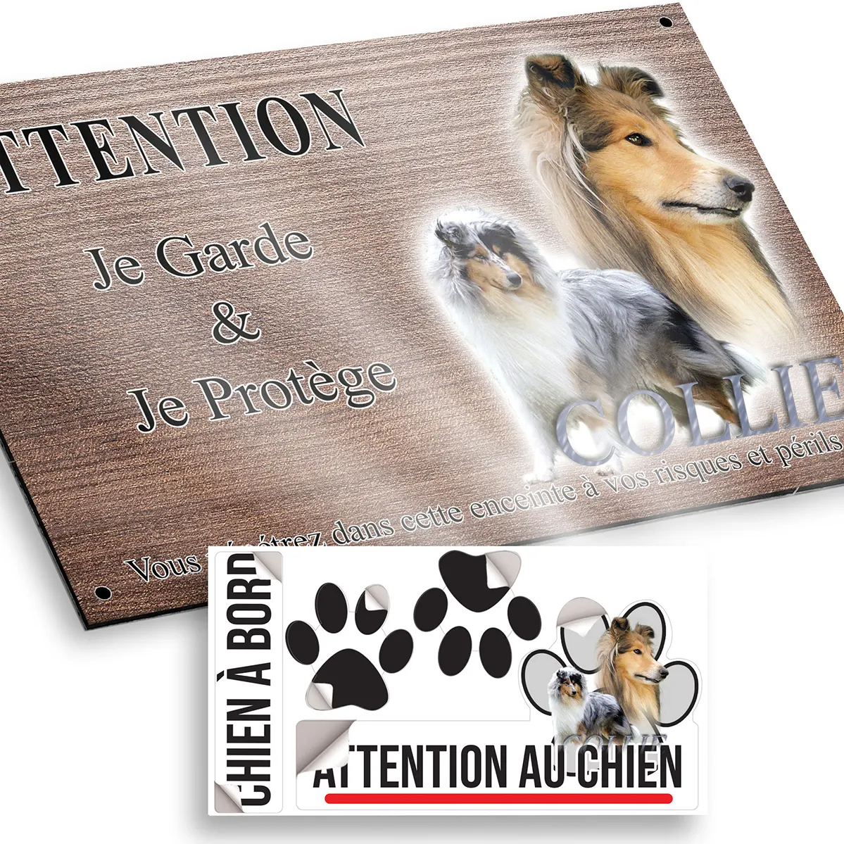 - Plaque Attention au chien colley : signalétique claire et dissuasive