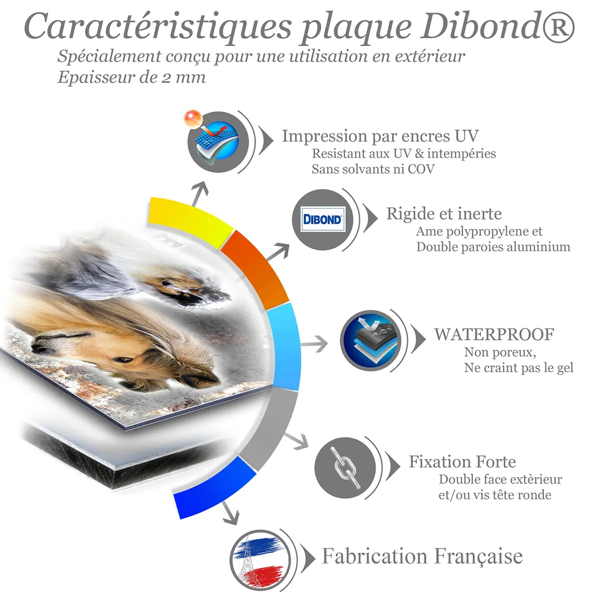 Oui, la plaque est fabriquée en aluminium Dibond de 2 mm et imprimée en UV. Elle ne craint ni la pluie, ni le soleil, ni le gel. Elle peut rester fixée dehors toute l’année sans perdre ses couleurs.