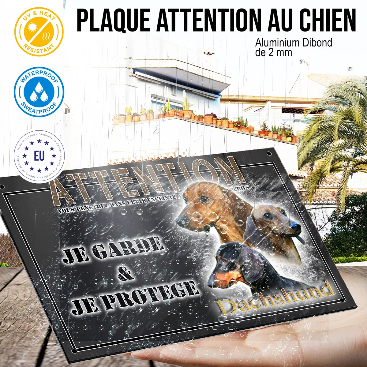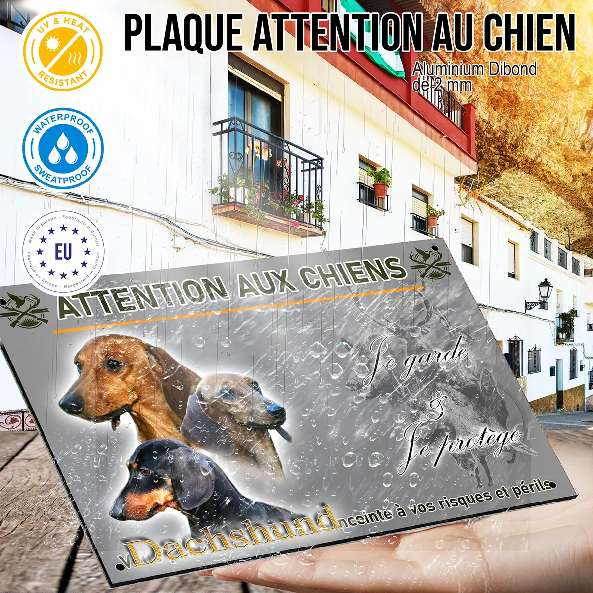- Plaque Attention au chien dackel : signalétique claire et dissuasive