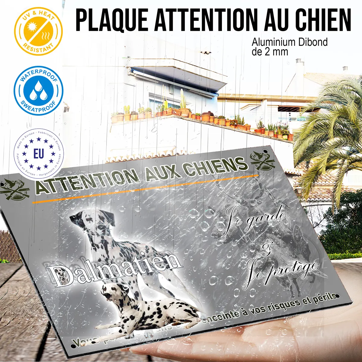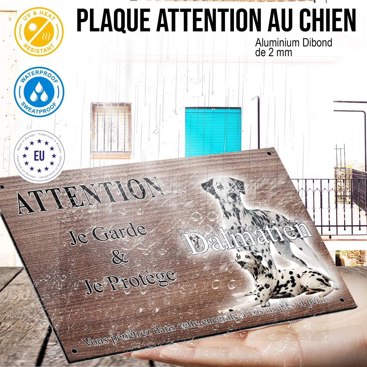 Plaque attention au chien Dalmatien métal résistant extérieur