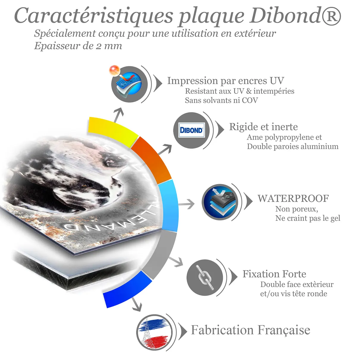- Matériaux de qualité : Finitions précises en métal Dibond.