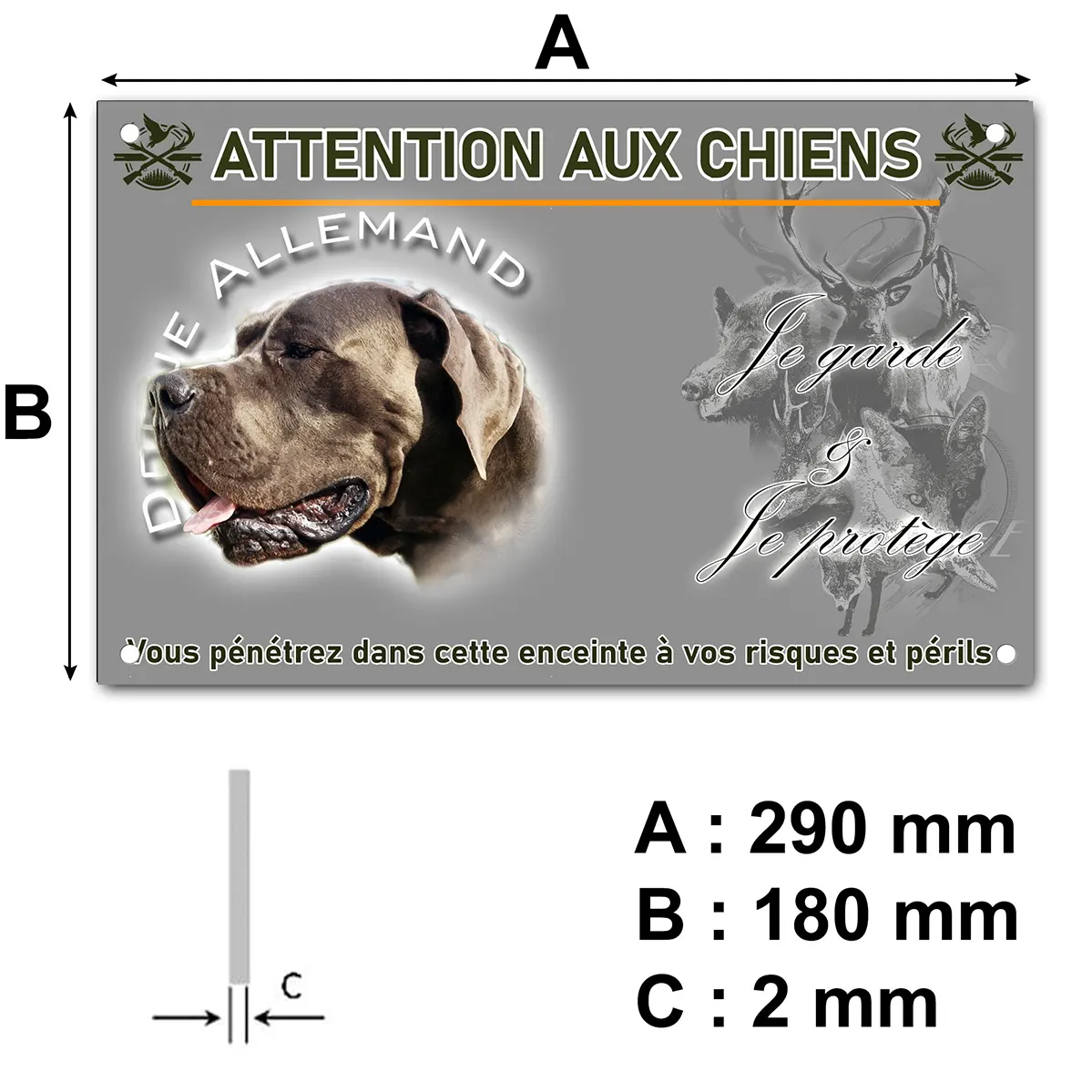 Pour en savoir plus sur notre gamme de plaque attention au chien dogue allemand bleu