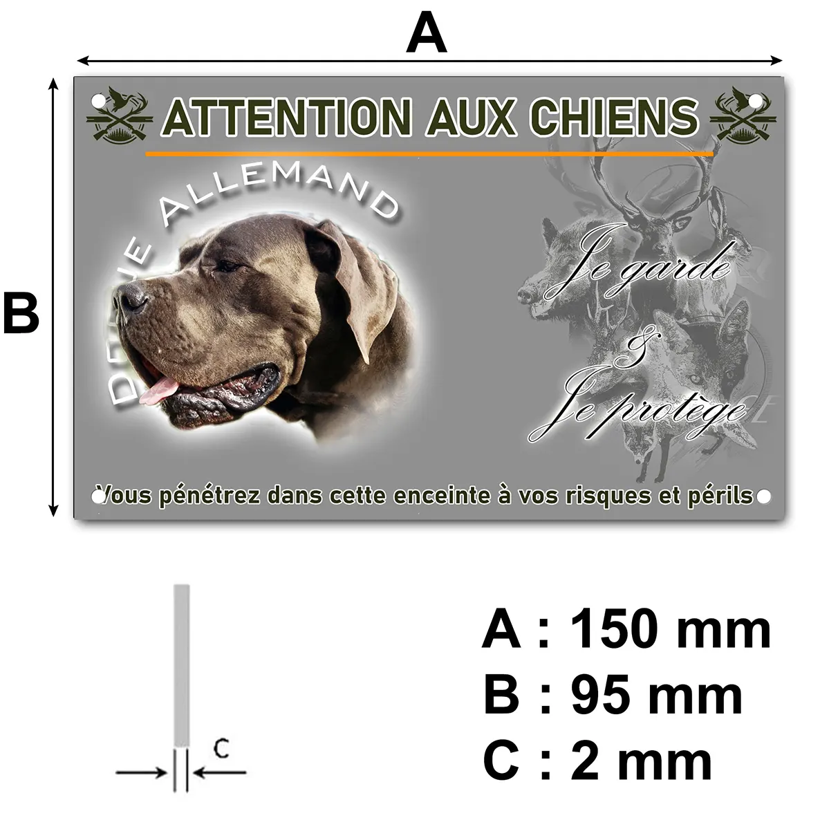 Oui, la mention “Attention au chien” est claire et lisible. Le visuel du Pointer Anglais renforce l’effet dissuasif auprès des visiteurs ou des intrus.