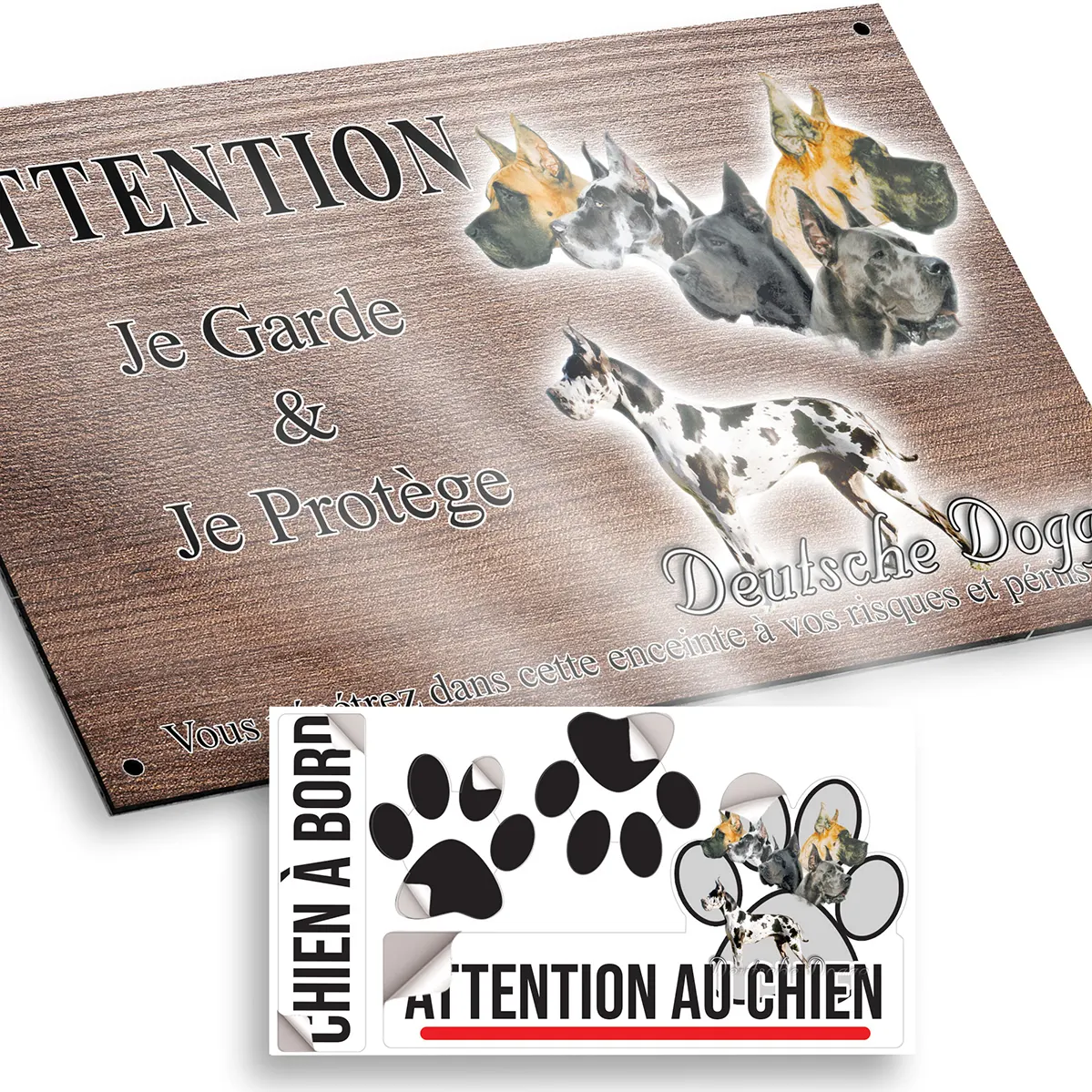 Pour en savoir plus sur notre gamme de plaque attention au chien dogue allemand