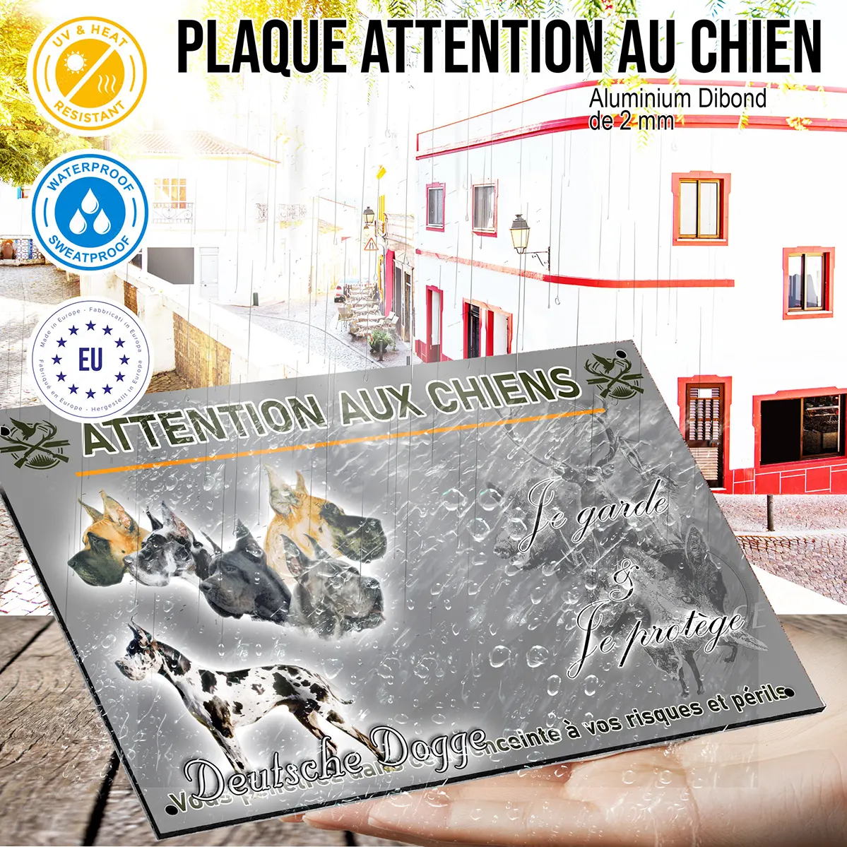 - Plaque Attention au chien dogue allemand : signalétique claire et dissuasive