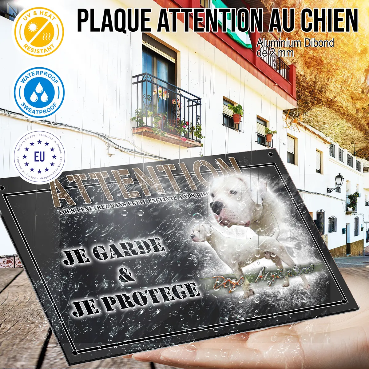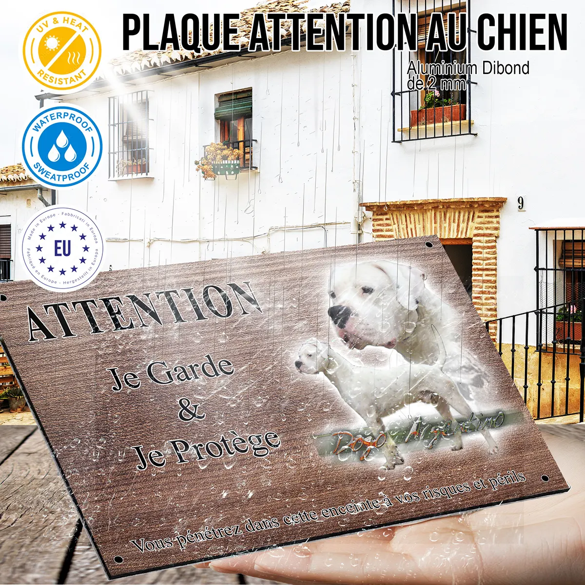• Plaque Attention au chien dogue argentin : signalétique claire et dissuasive