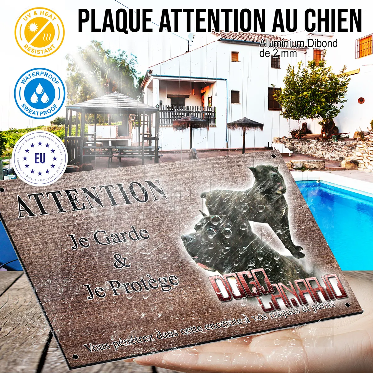 Au-delà de son rôle protecteur, cette plaque est un élément décoratif soigné qui met en valeur la beauté et la noblesse du dogue des canaries. Que vous soyez passionné de la race ou que vous recherchiez une signalétique fiable, ce panneau conjugue sécurité, information et esthétisme, pour rassurer et impressionner tout en restant élégant sur votre portail ou votre entrée.
