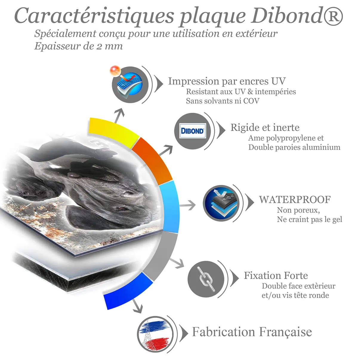 Oui, la plaque est fabriquée en aluminium Dibond de 2 mm et imprimée en UV. Elle ne craint ni la pluie, ni le soleil, ni le gel. Elle peut rester fixée dehors toute l’année sans perdre ses couleurs.