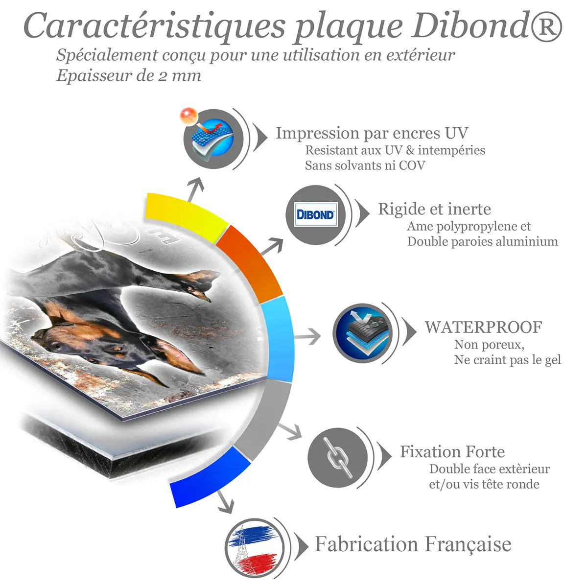 Au-delà de son usage en signalétique de sécurité, cette plaque met en valeur l’élégance du Dobermann à travers une reproduction fidèle et artistique. Elle s’intègre harmonieusement à tous les styles d’extérieurs, ajoutant une touche de personnalité à votre demeure. Optez pour la combinaison parfaite entre protection et décoration avec cette plaque Attention au chien femelles dobermann !