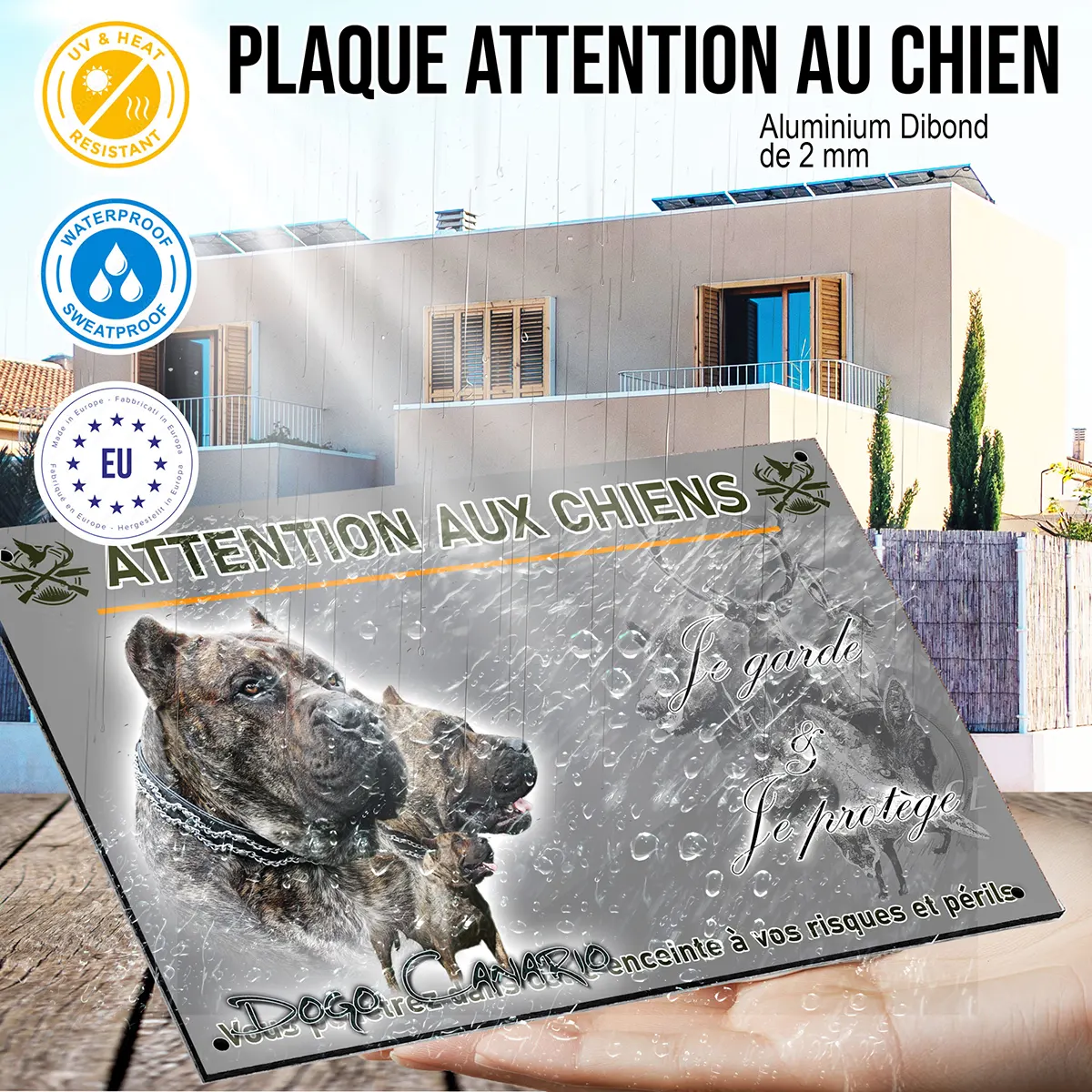 - Plaque Attention au chien fememelle dogue des canaries : signalétique claire et dissuasive