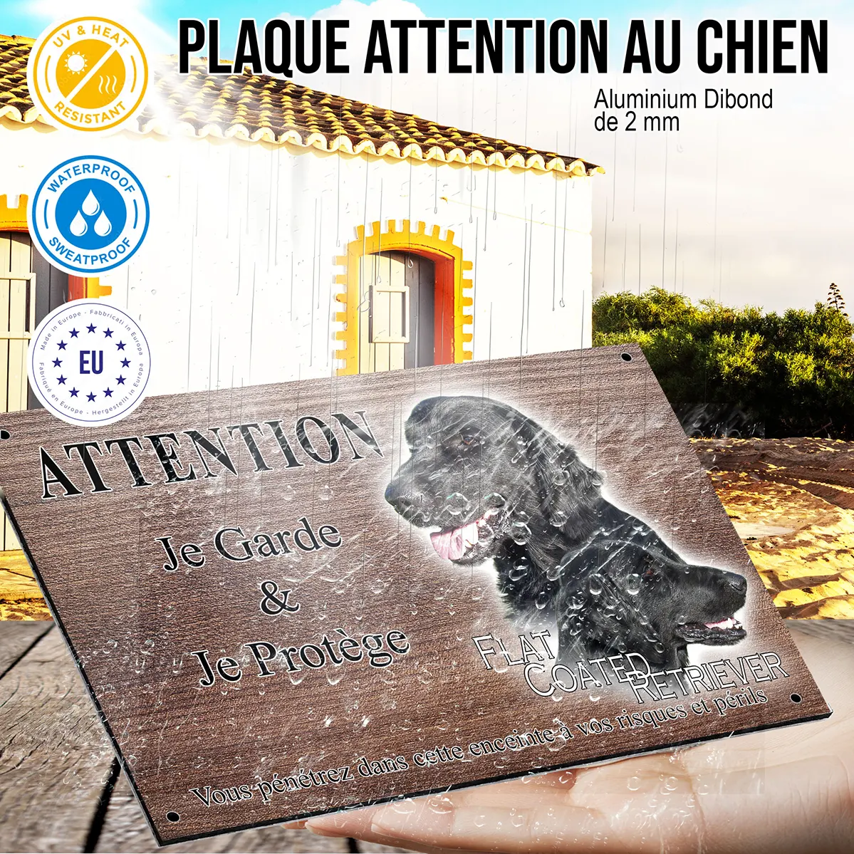 Pour en savoir plus sur notre gamme de plaque attention au chien flat-coated retriever