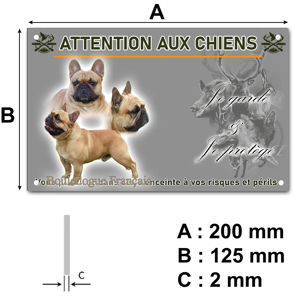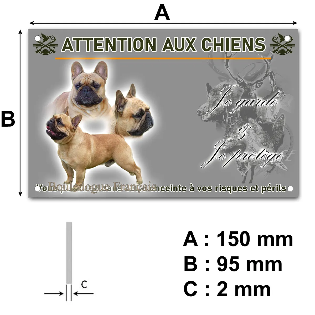 Plaque attention au chien French Bulldog métal résistant extérieur