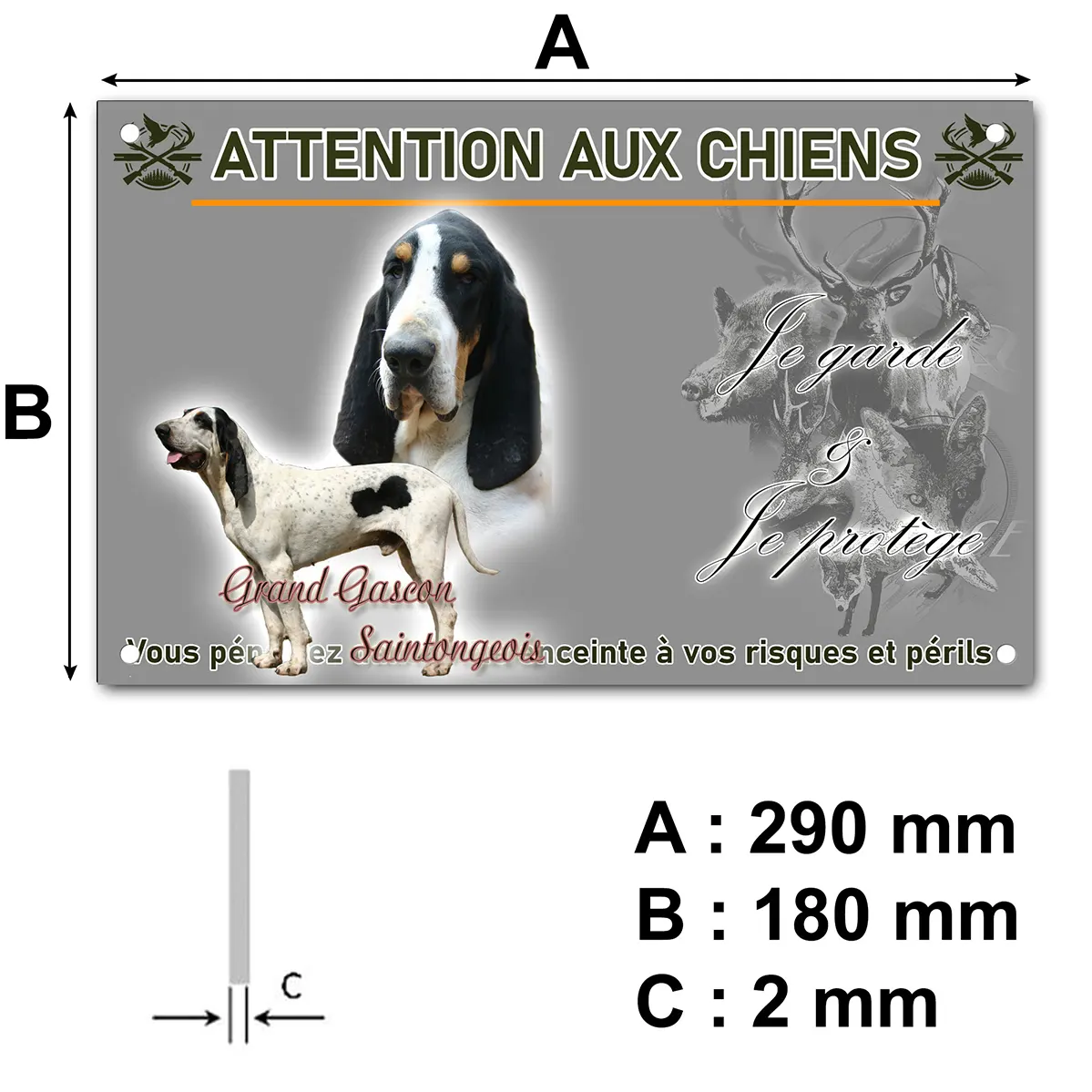 - Plaque Attention au chien gascon saintongeois : signalétique claire et dissuasive