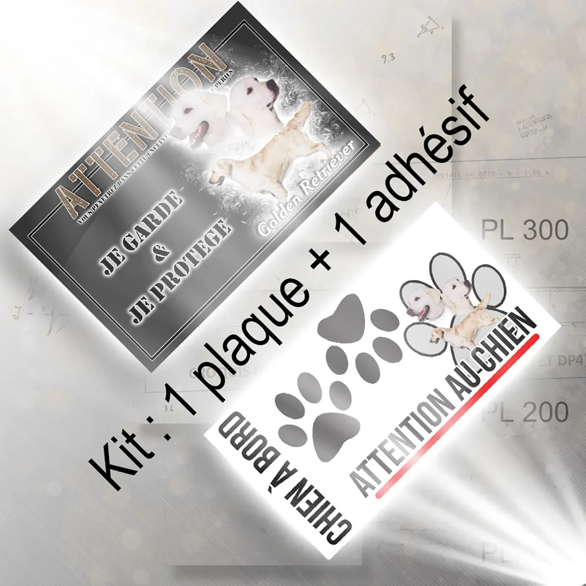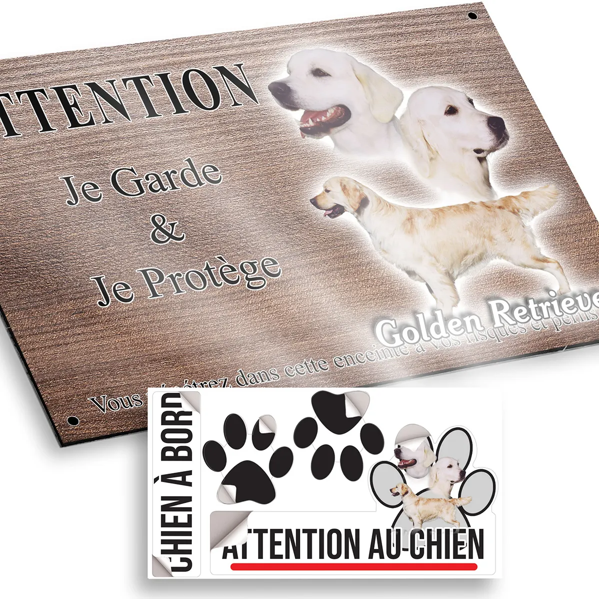 Pour en savoir plus sur notre gamme de plaque attention au chien golden retriever