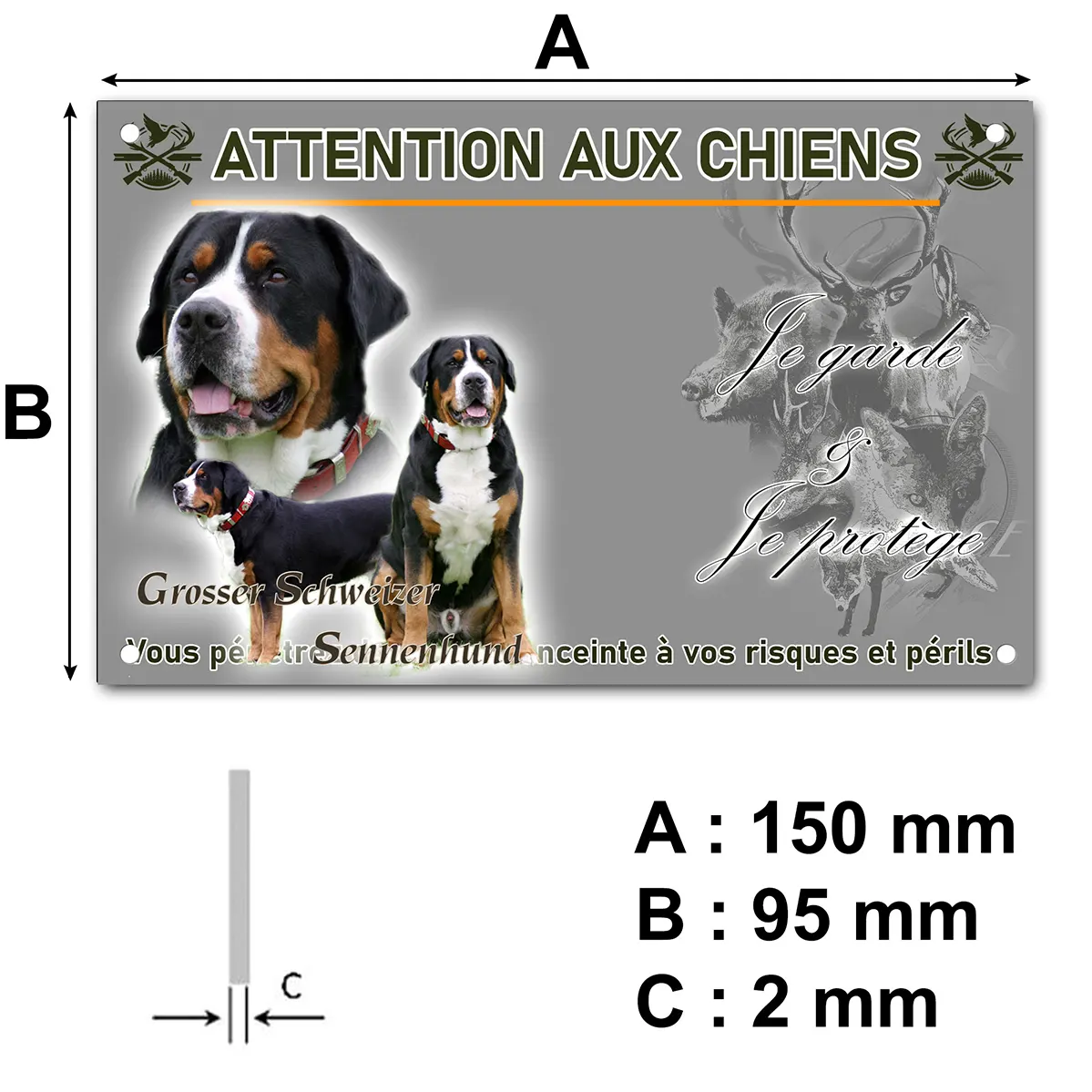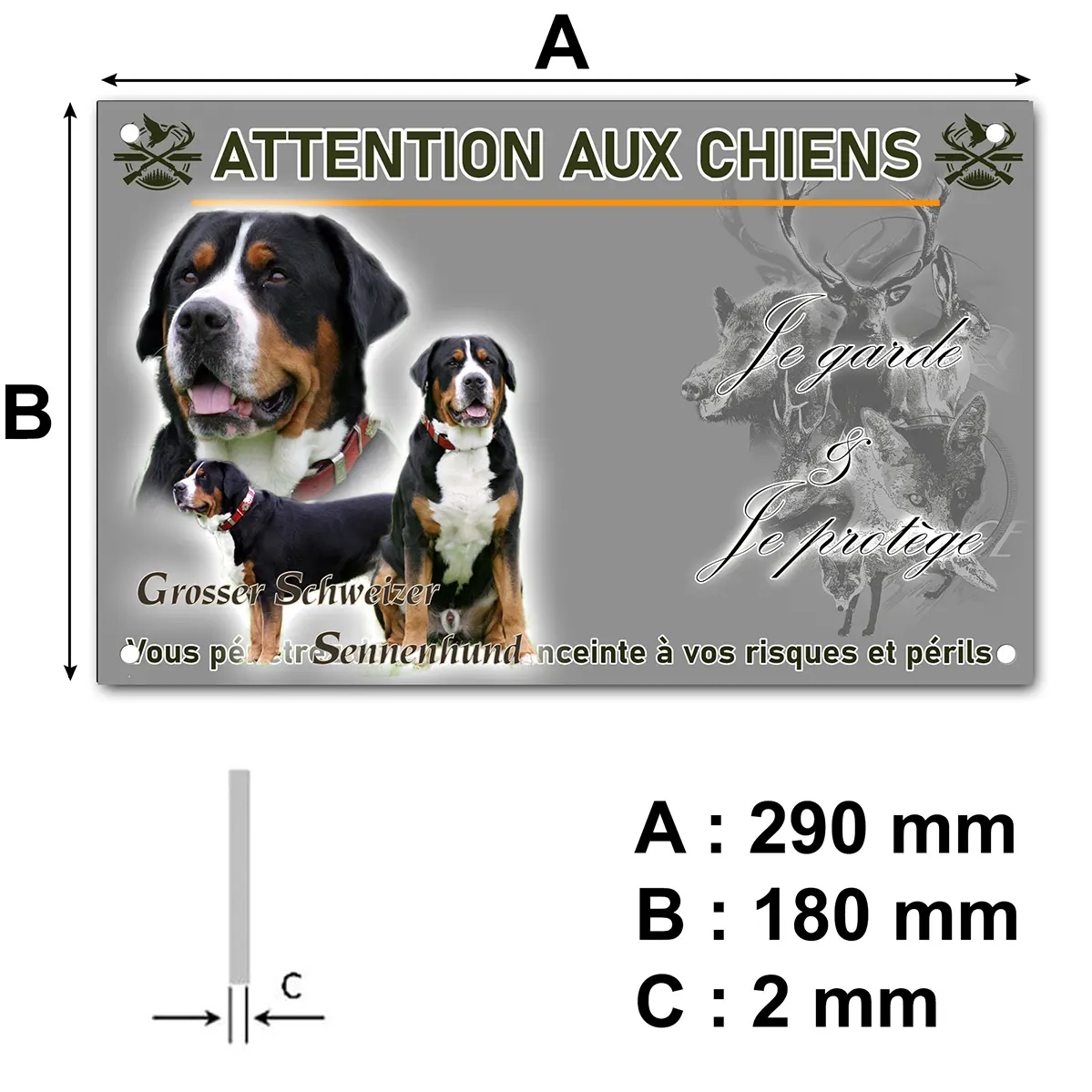 Plaque attention au chien Grand Bouvier Suisse métal résistant extérieur