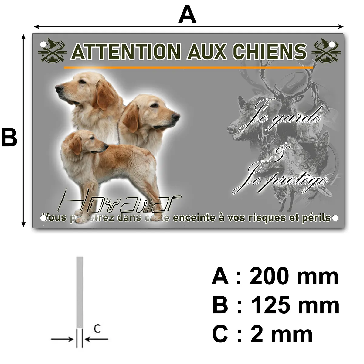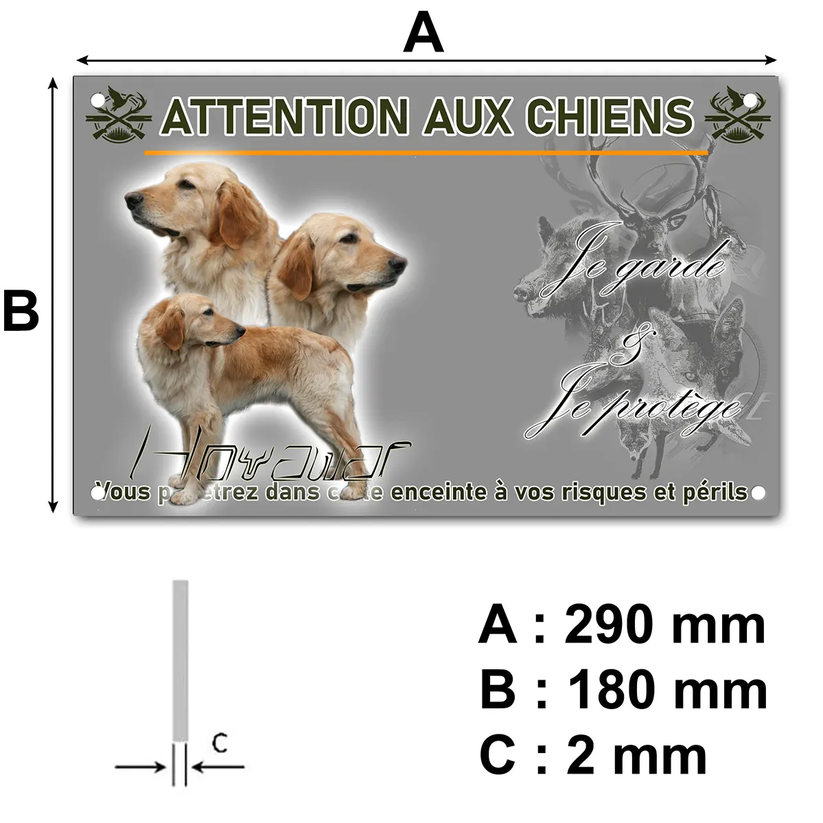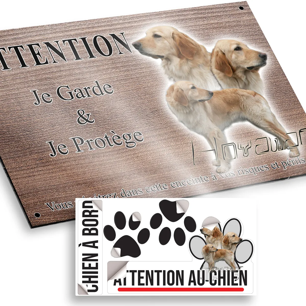 - Plaque Attention au chien hovawart blond : signalétique claire et dissuasive