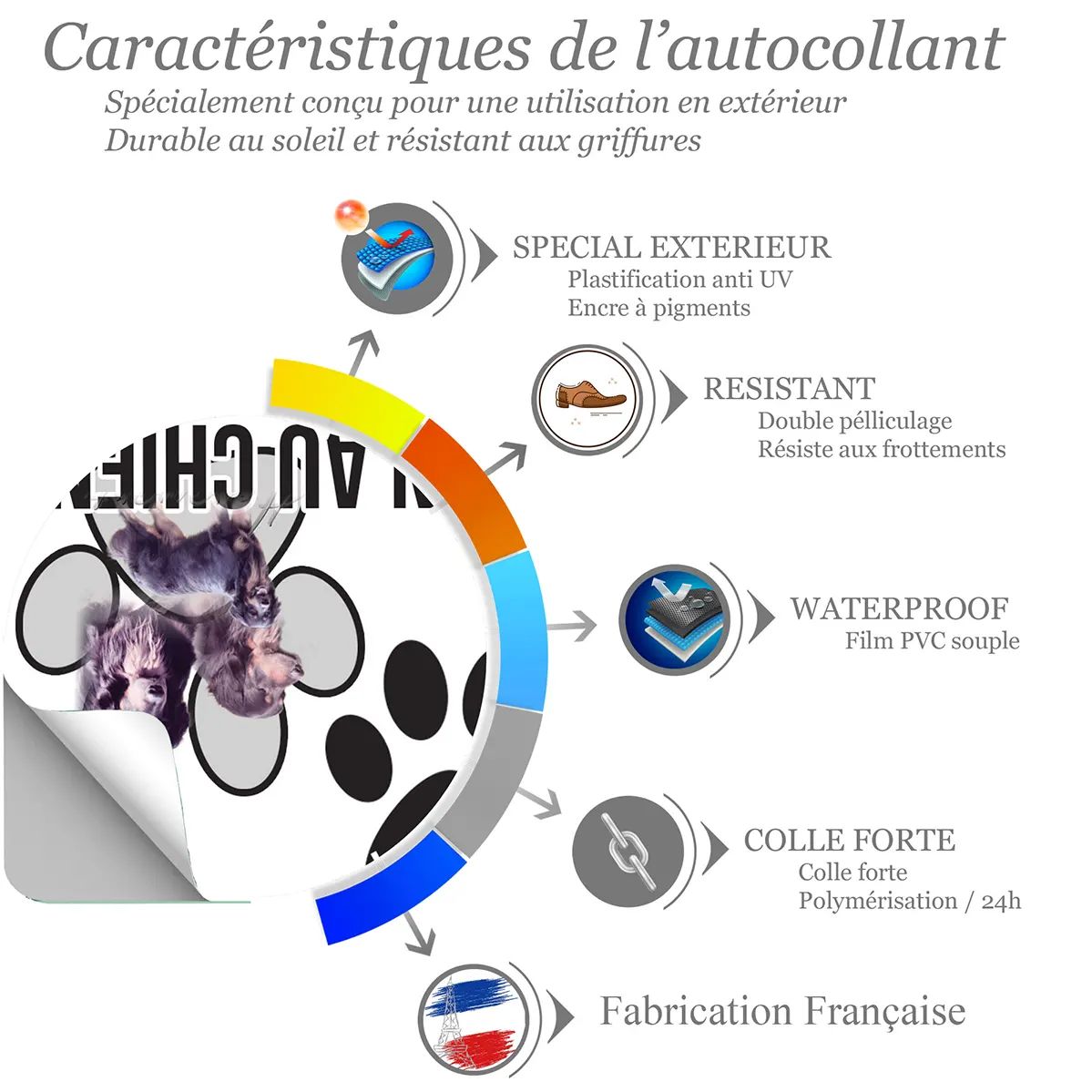 Apposer une plaque Attention au chien avec l’image de trois Hovawarts en posture vigilante renforce la dissuasion. Elle alerte élégamment les visiteurs de la présence d’un chien gardien sans jamais paraître agressif. Cette signalétique permet d’anticiper les risques tout en valorisant la beauté et la prestance du Hovawart. Idéale pour tous ceux qui souhaitent protéger leur habitat avec efficacité et esthétisme.