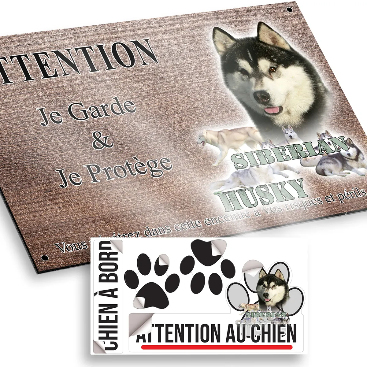 Pour en savoir plus sur notre gamme de plaque attention au chien husky sibérien