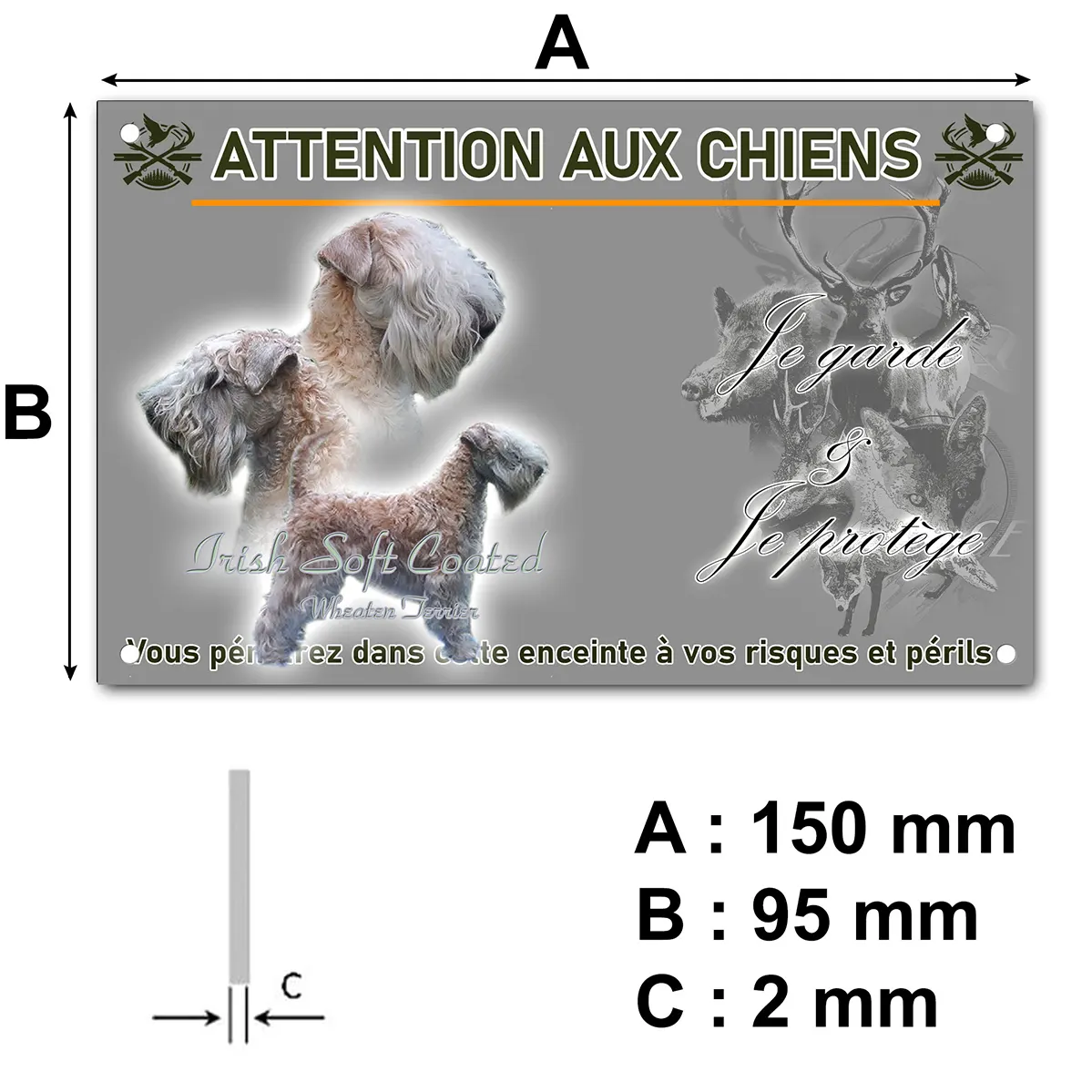 - Plaque Attention au chien irish-soft-coated : signalétique claire et dissuasive