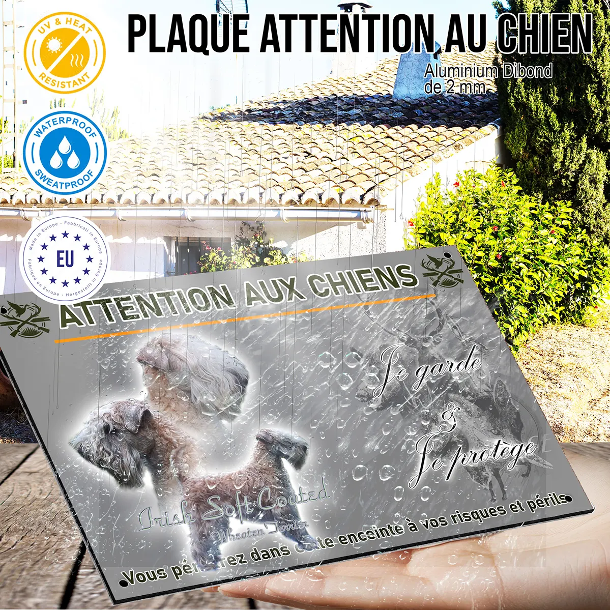 Plaque attention au chien Irish-soft-coated métal résistant extérieur