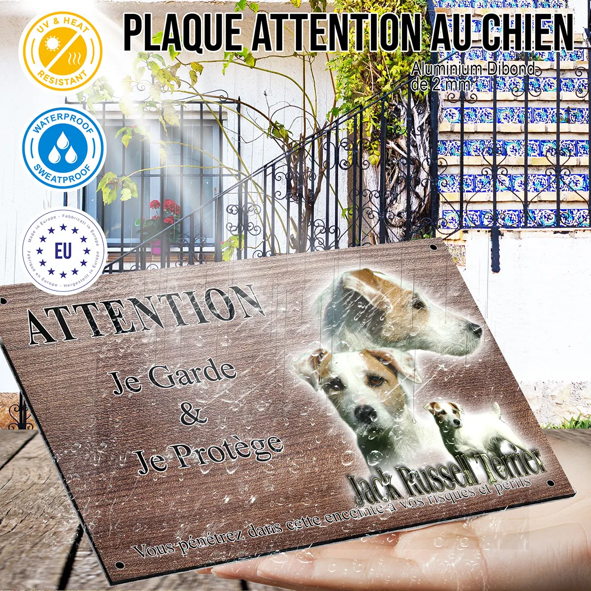 - Plaque Attention au chien jack russel : signalétique claire et dissuasive