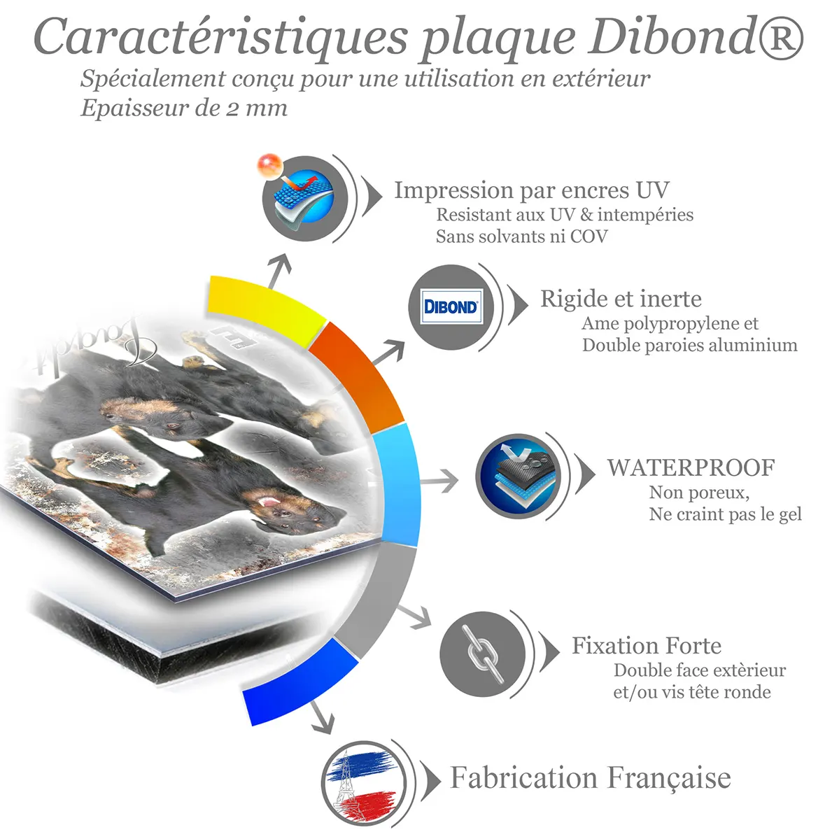 Oui, la plaque est fabriquée en aluminium Dibond de 2 mm et imprimée en UV. Elle ne craint ni la pluie, ni le soleil, ni le gel. Elle peut rester fixée dehors toute l’année sans perdre ses couleurs.