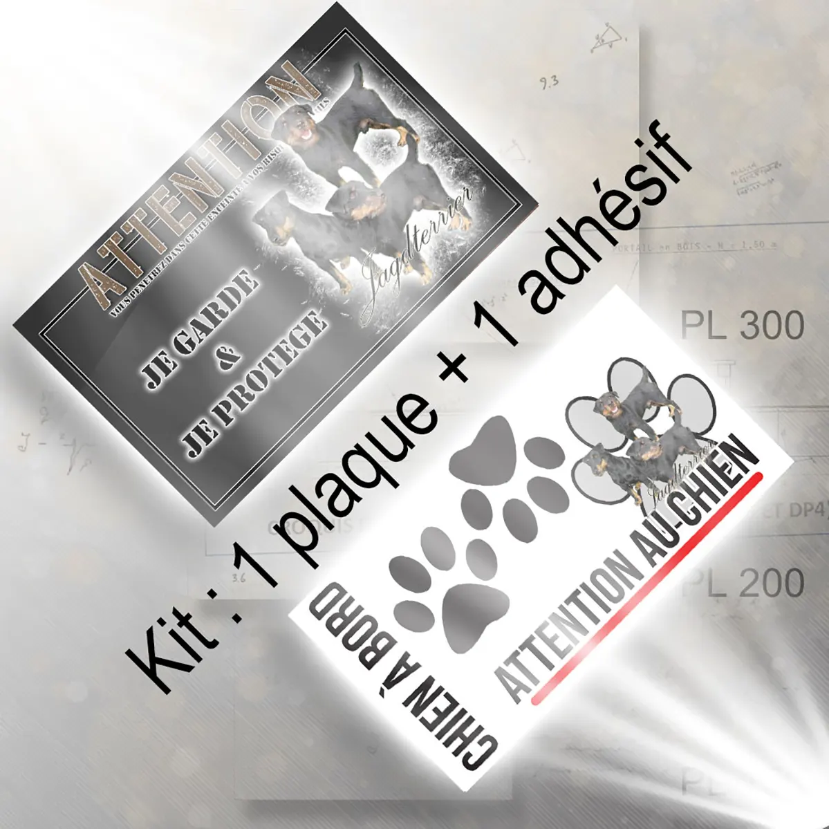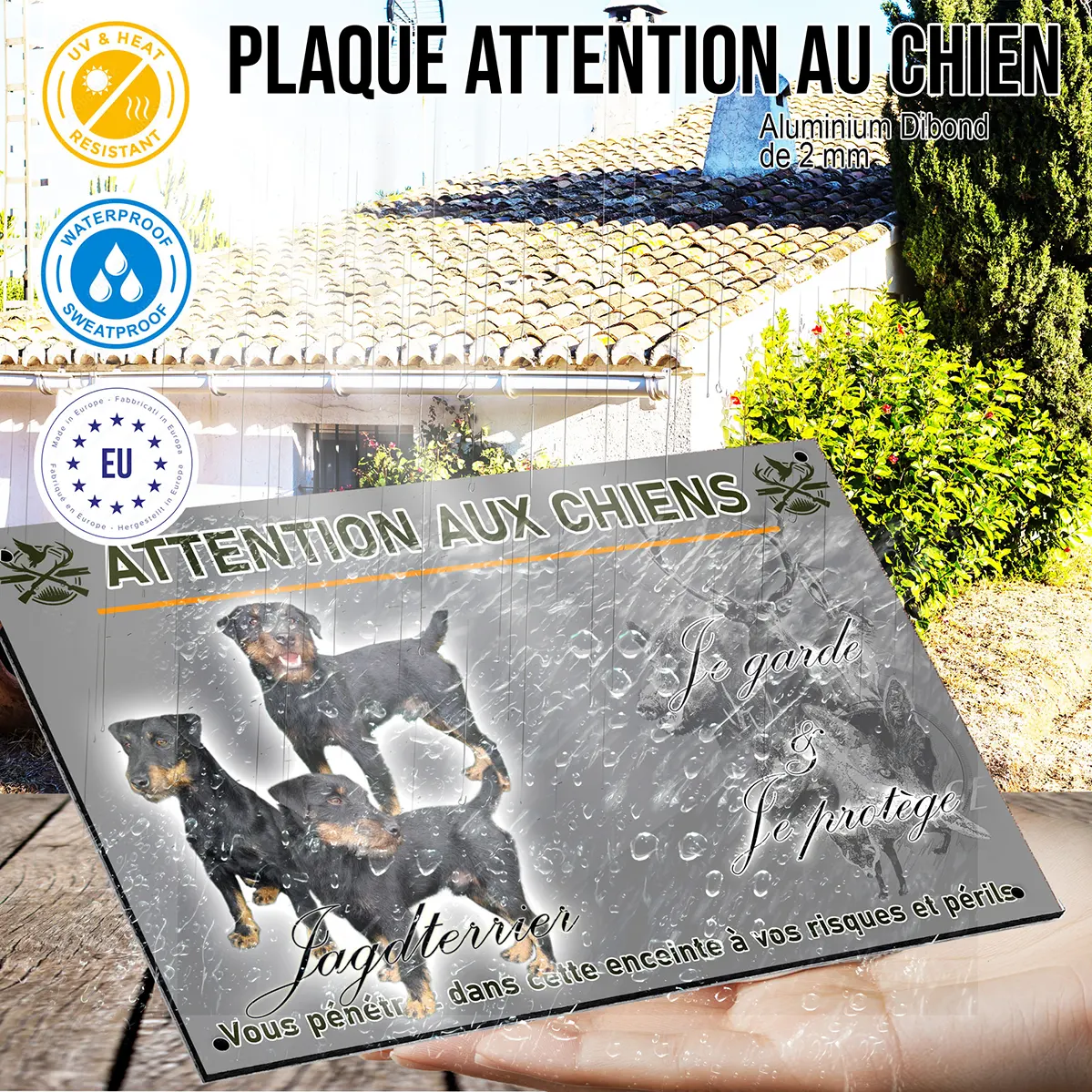Pour en savoir plus sur notre gamme de plaque attention au chien jagd terrier
