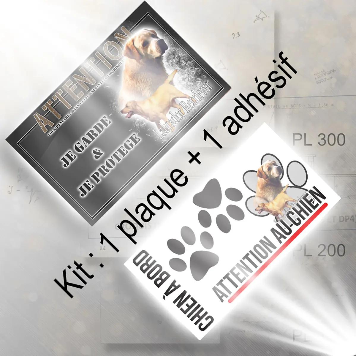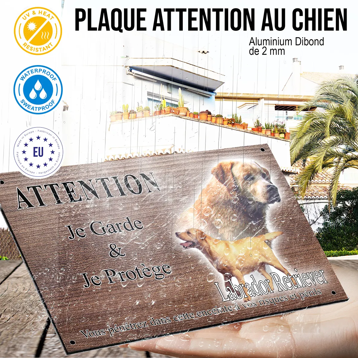 Pour en savoir plus sur notre gamme de plaque attention au chien labrador sable