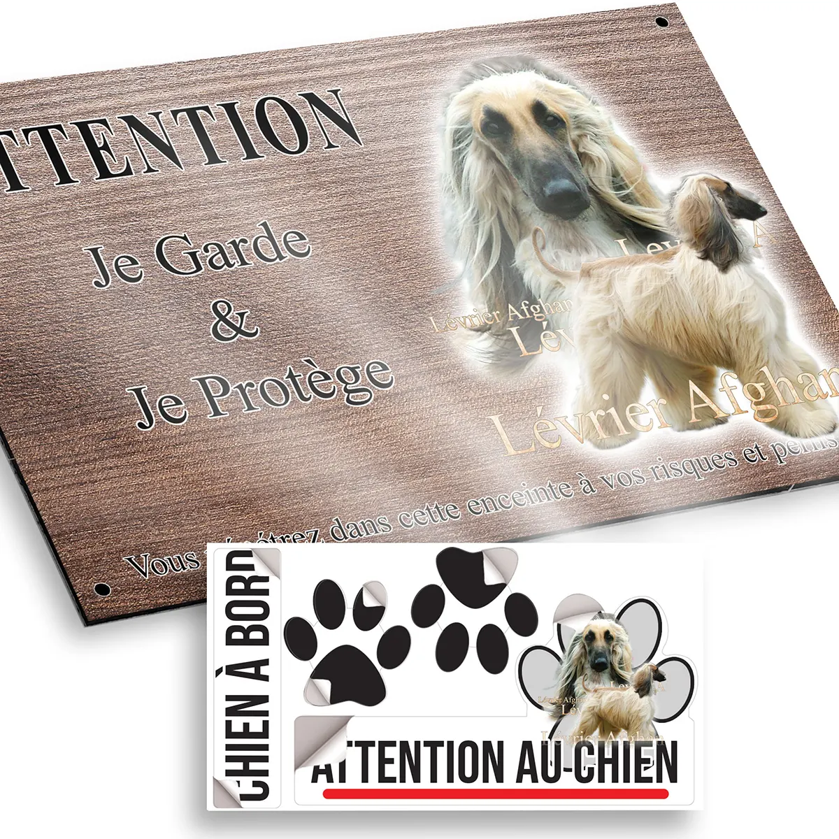 Pour en savoir plus sur notre gamme de plaque attention au chien lévrier afghan