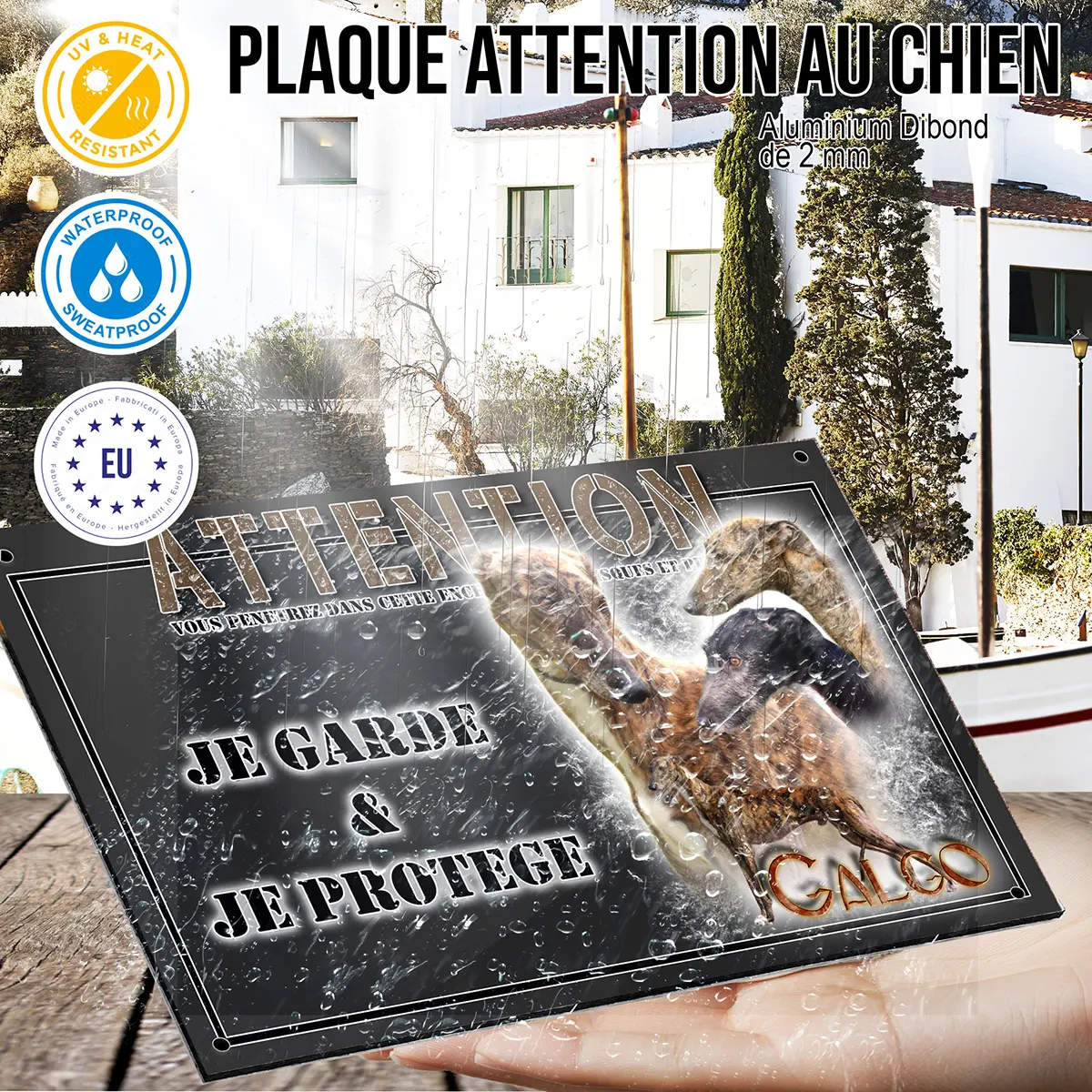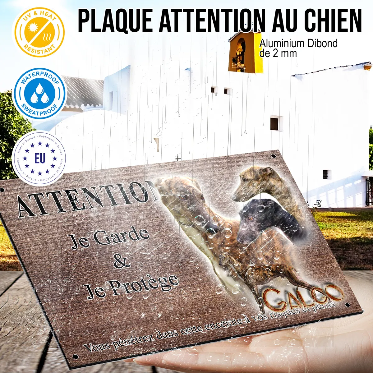- Plaque Attention au chien lévrier galgo espagnol : signalétique claire et dissuasive