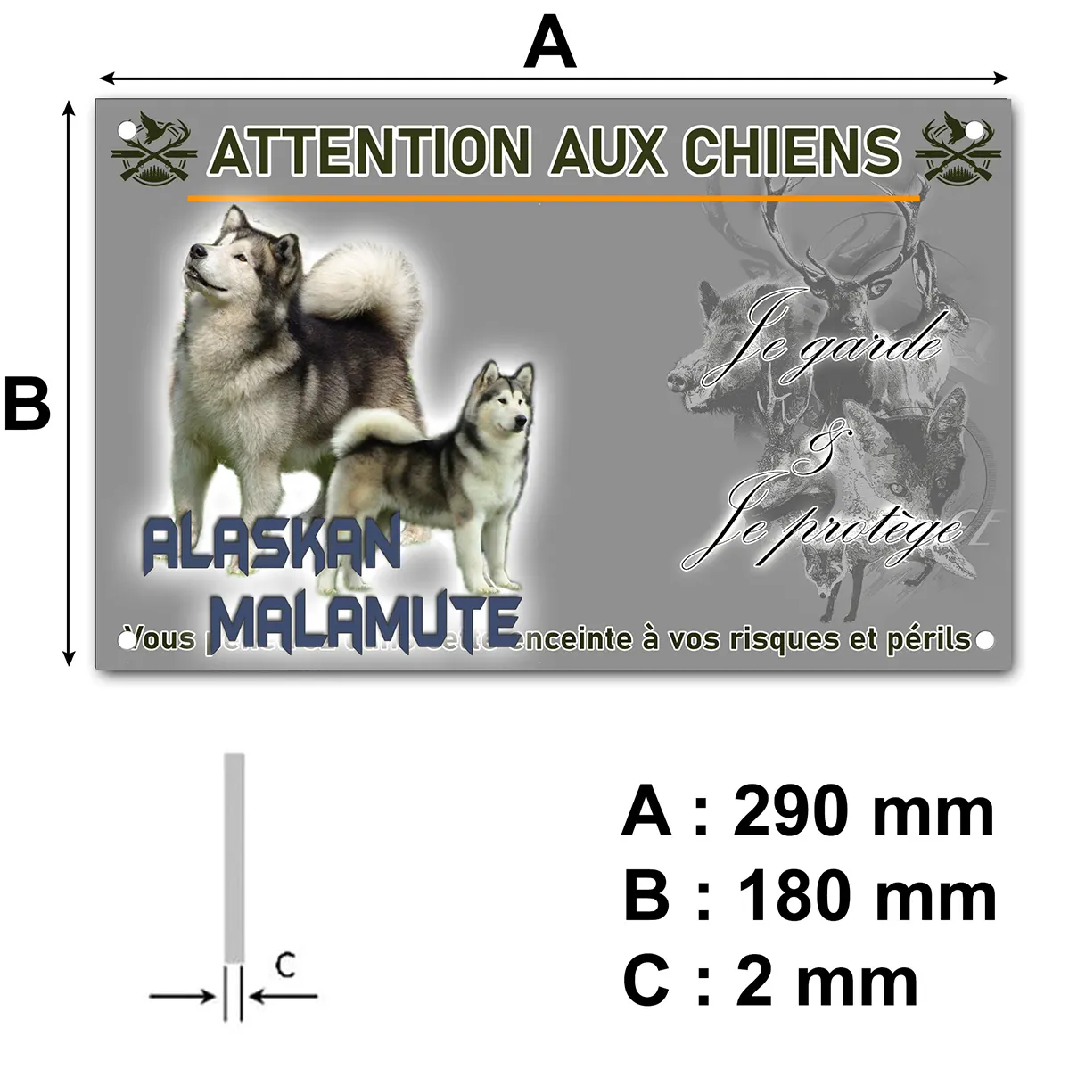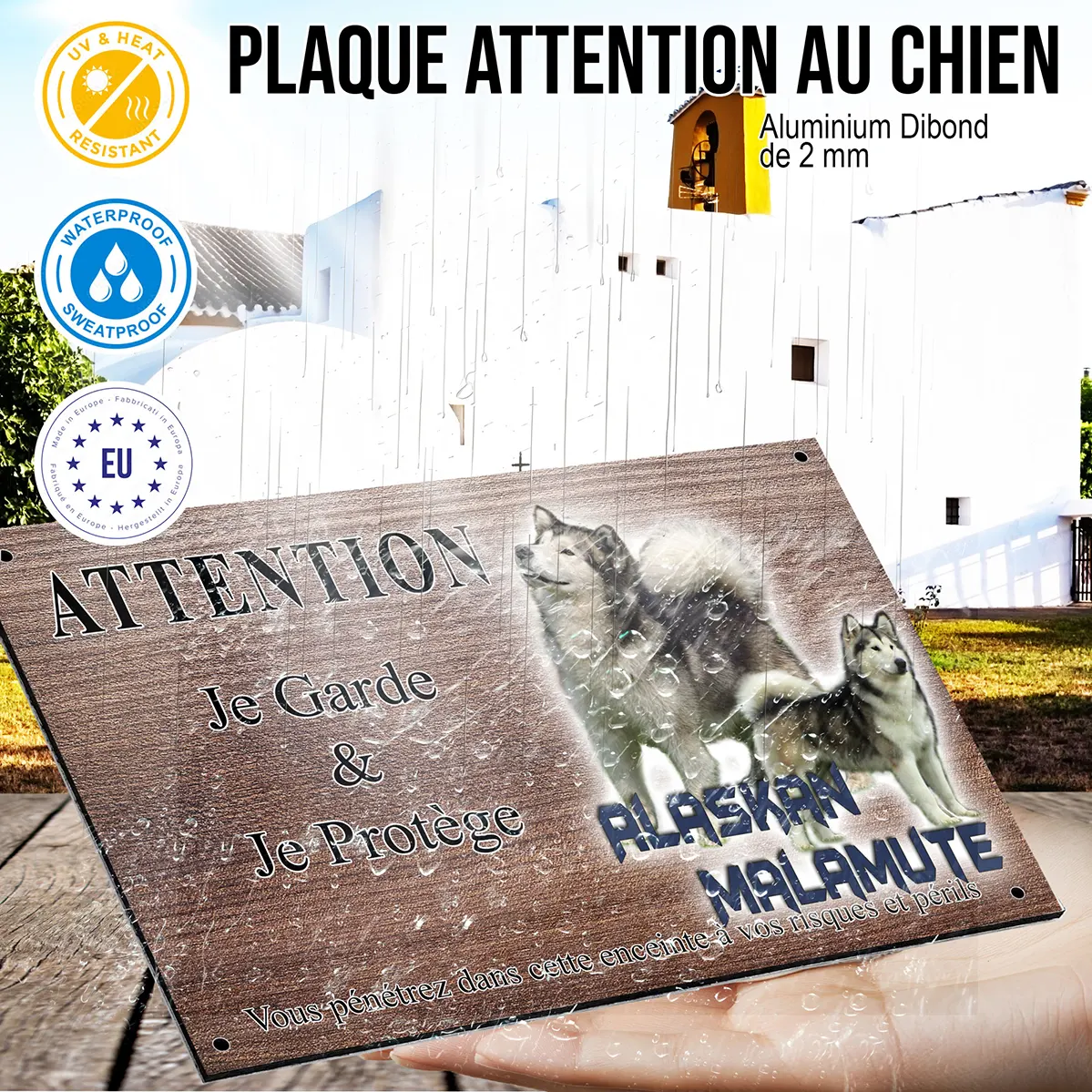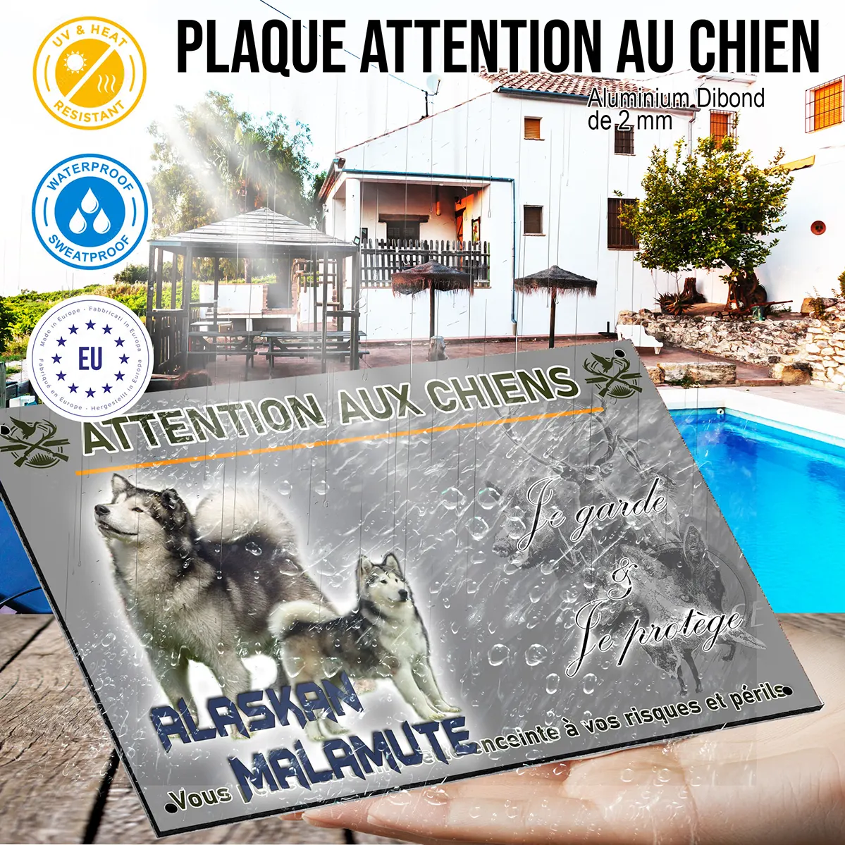 - Plaque Attention au chien malamute de l’alaska : signalétique claire et dissuasive