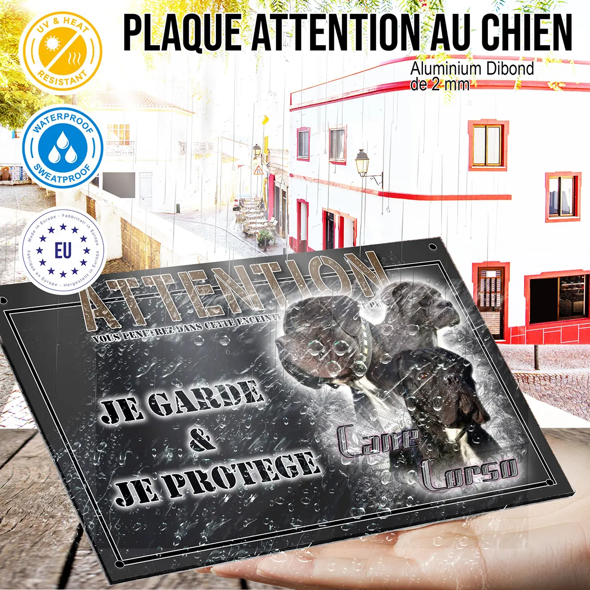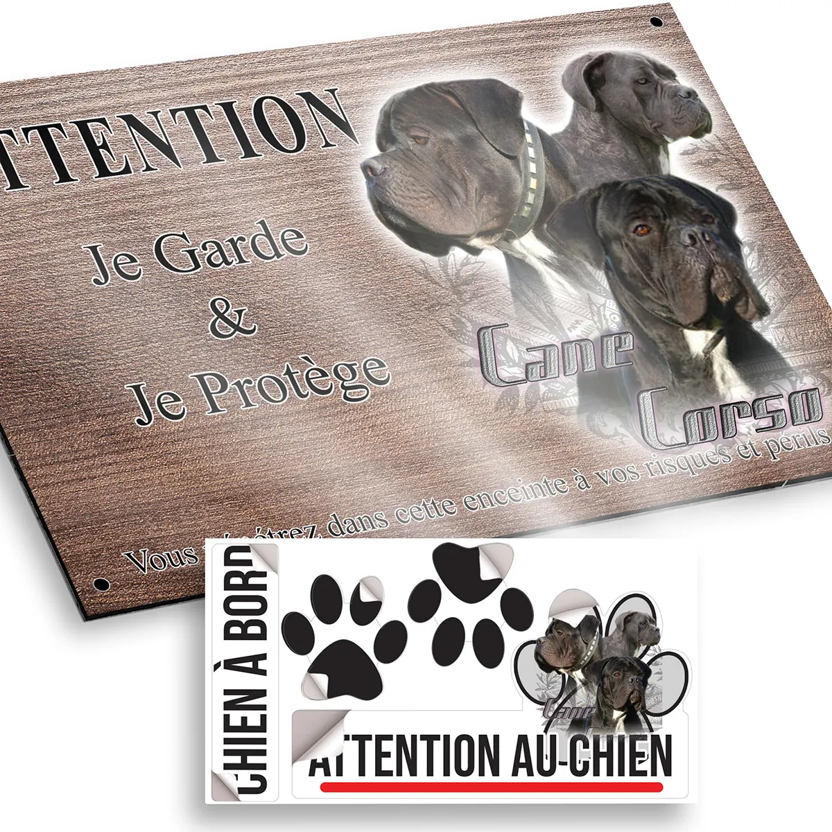 - Plaque Attention au chien mâle cane corso : signalétique claire et dissuasive